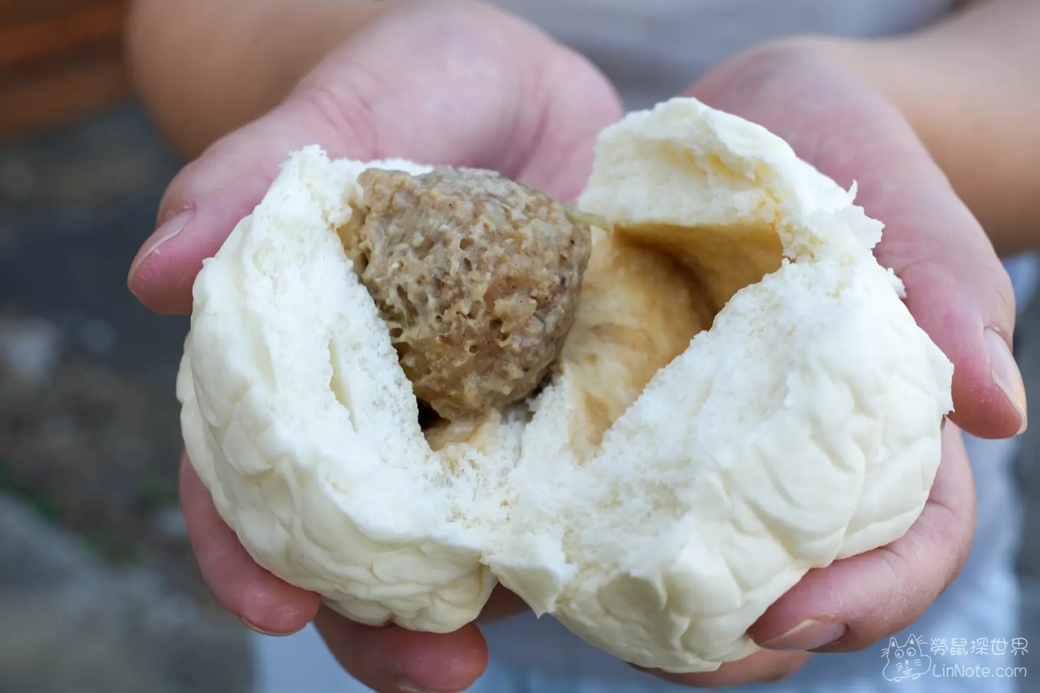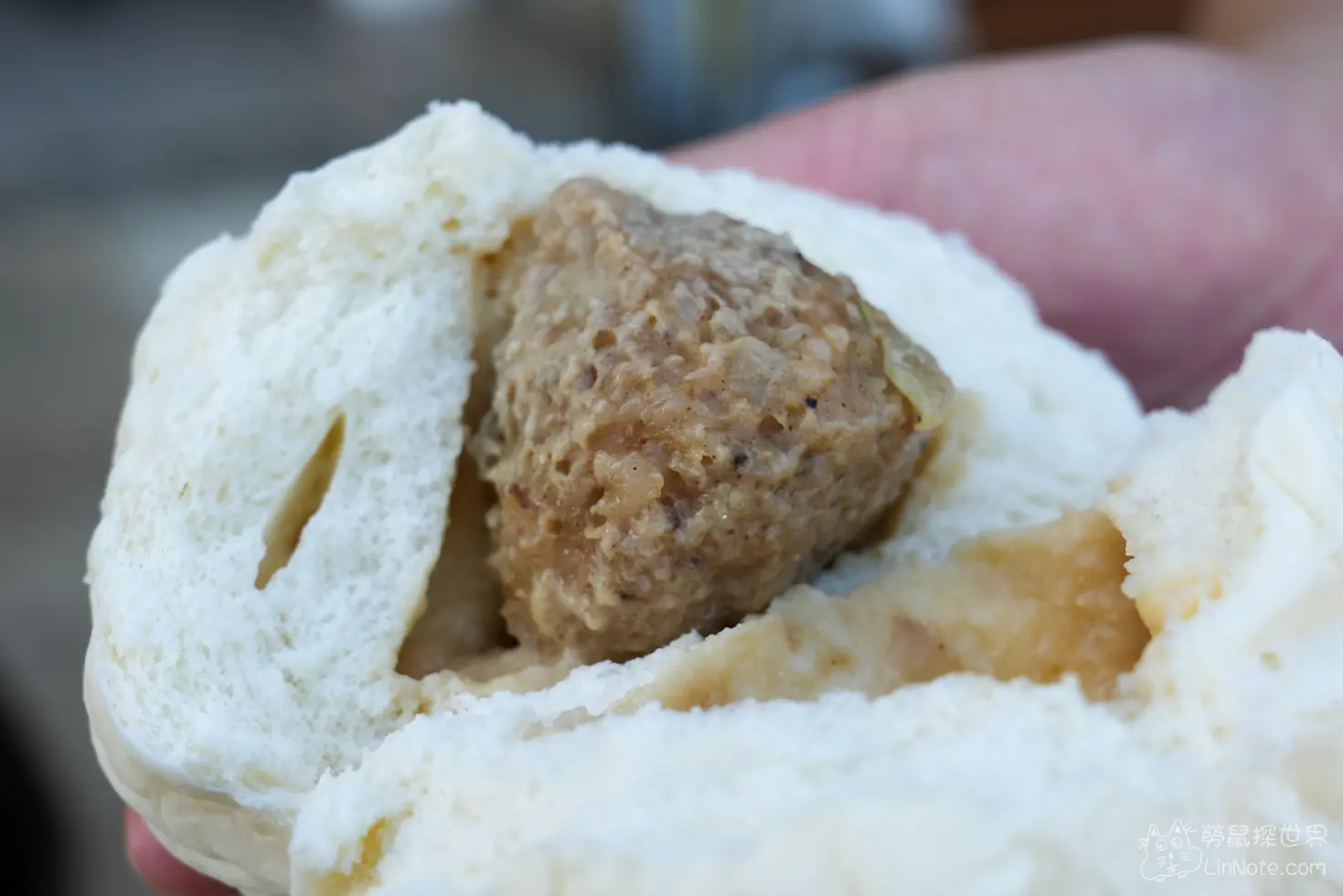 雖然只要10塊錢,但肉包很大一顆!裡面的餡料相較於外皮雖然稍微少一點,但味道鹹香、調味很不錯,裡面真的有一顆完整的肉丸子,肉質紮實且帶點蔥香,是店內的超人氣王。