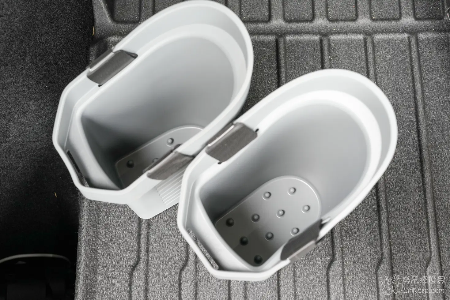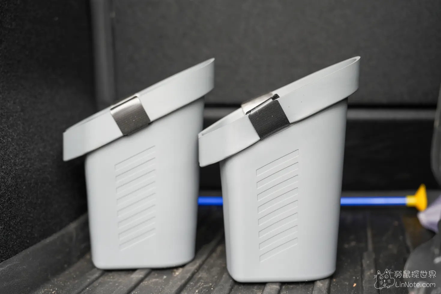它還有附魔鬼氈,如果你不想放門邊,也可以黏在副駕腳邊或是後座地板絨毛處,甚至可以搭配剛剛介紹的手套箱掛鉤,直接變身成一個懸空的置物盒。保持車內整潔就靠這兩個小桶子了!