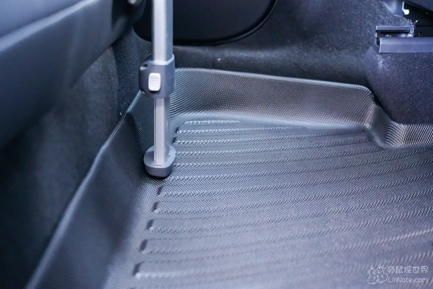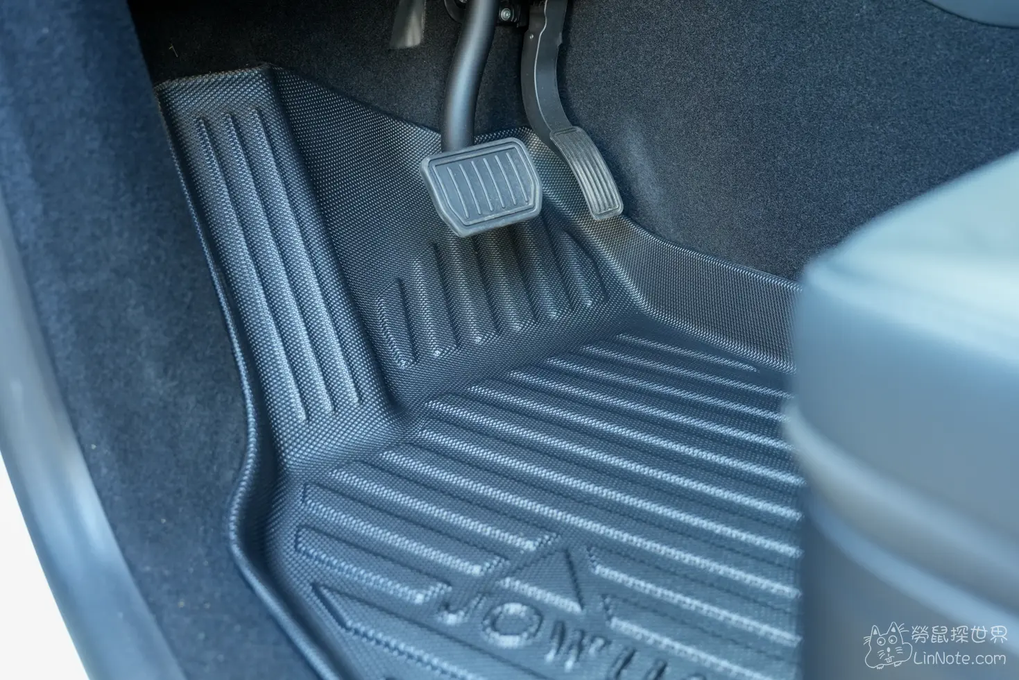 車子最怕什麼?最怕飲料打翻或是鞋子踩得全是泥沙。這款針對 Model Y 煥新版開發的立體腳踏墊,四周都有加高設計,水打翻了也只會積在墊子裡,拿出來沖一沖就乾淨了。