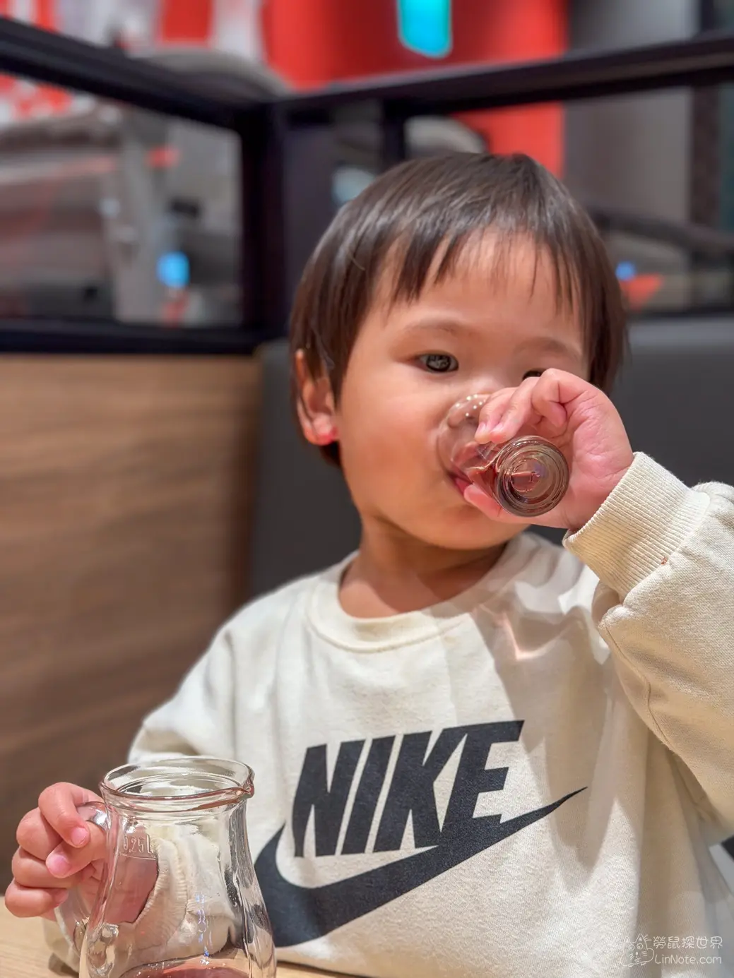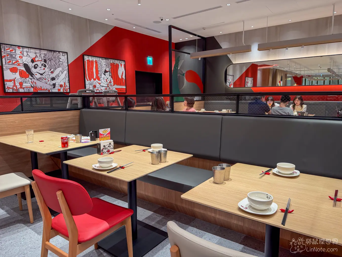 這間店在 2026 年初剛慶祝成為集團第 100 家分店,對品牌來說具有指標性意義。餐廳環境承襲一貫的現代時尚感,大紅色的視覺非常吸睛,店內約近兩百個座位,包含3間包廂,空間感很大器,無論是百貨購物後的家庭聚餐或情侶約會都很適合。
