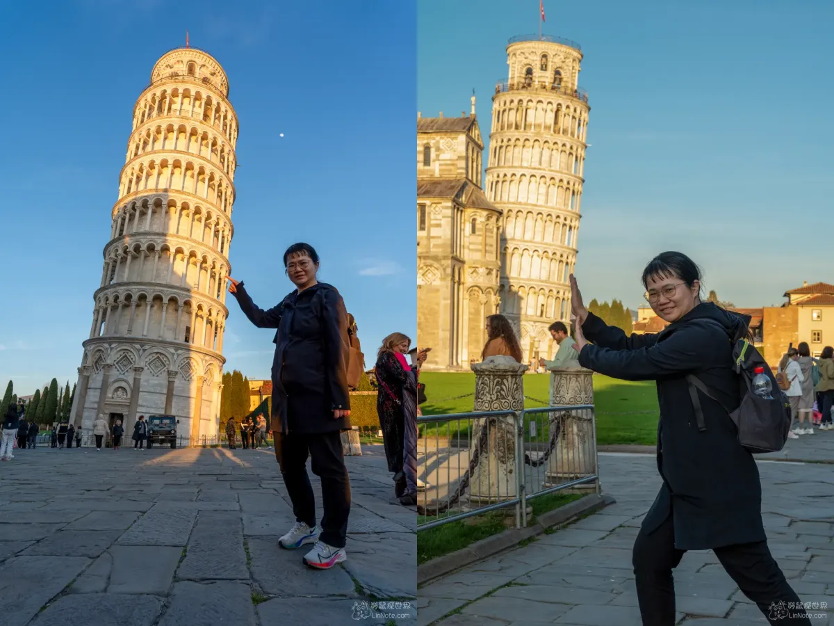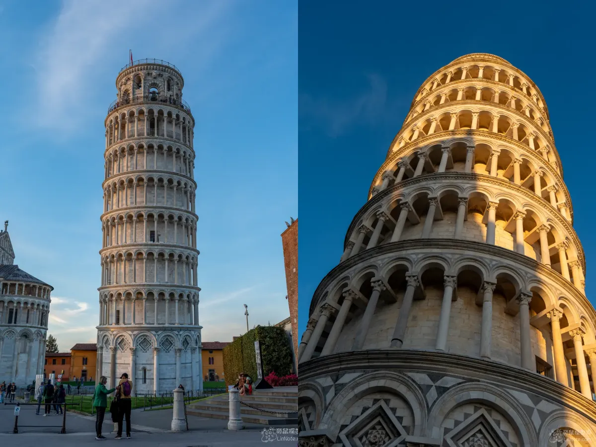 - 黃昏~日落前:斜塔與大教堂在金色光線下非常夢幻,天空變色也很好拍。
