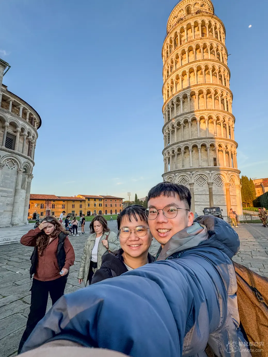 早上人最少、傍晚光線最美,是拍「推斜塔」和夕陽金色斜塔的黃金時段。別只拍完斜塔就走掉,記得順路把比薩主教座堂、聖若望洗禮堂、坎波桑托墓園和比薩古城牆一併排進行程,想延伸玩更多也可以接續散步到比薩老城區與阿諾河畔,讓這趟托斯卡尼比薩斜塔一日遊更完整、也更不虛此行。