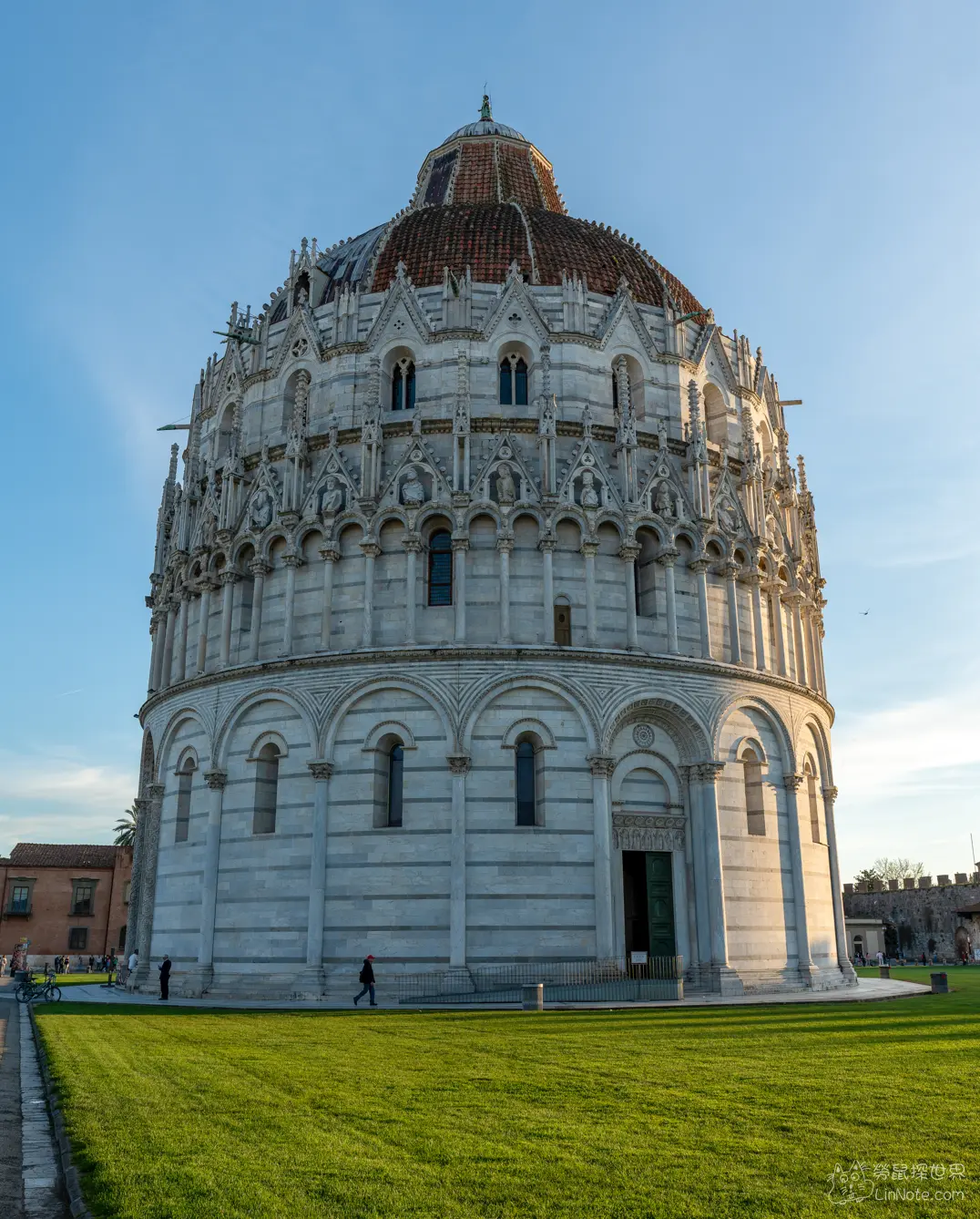 雖然斜塔名氣最大,但這座教堂才是奇蹟廣場的「心臟」。它建於 1064 年,當時比薩的海軍打敗了西西里的薩拉森人(穆斯林),搶回來了大量的金銀財寶,於是比薩人決定:「我們要蓋一座讓對手(尤其是威尼斯和佛羅倫斯)羨慕到嫉妒的超級大教堂!」