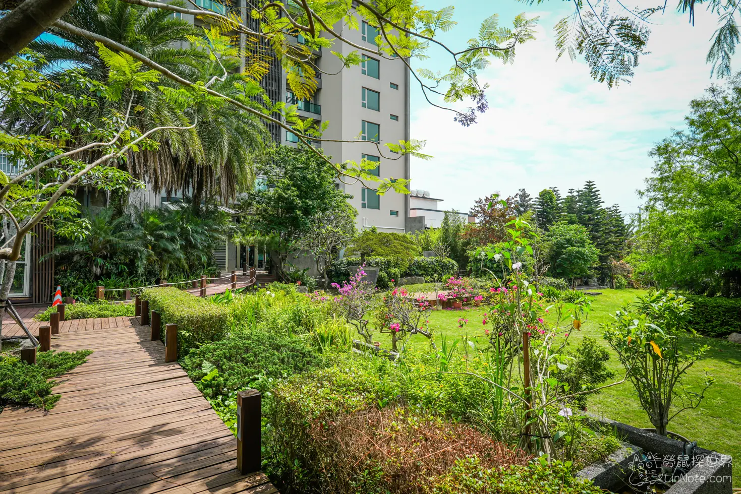 太魯閣立閣人文旅店有著非常大的庭院,庭院整理得相當精緻美觀,很適合在這裡走一走散心,不過因為有庭院水池與綠地,蚊子較多,建議做好防蚊措施,避免叮咬。