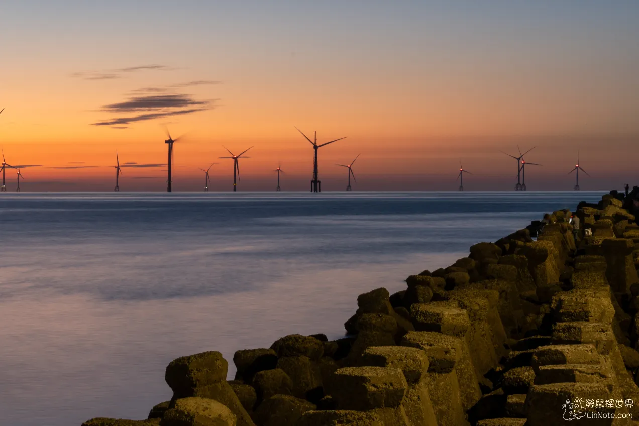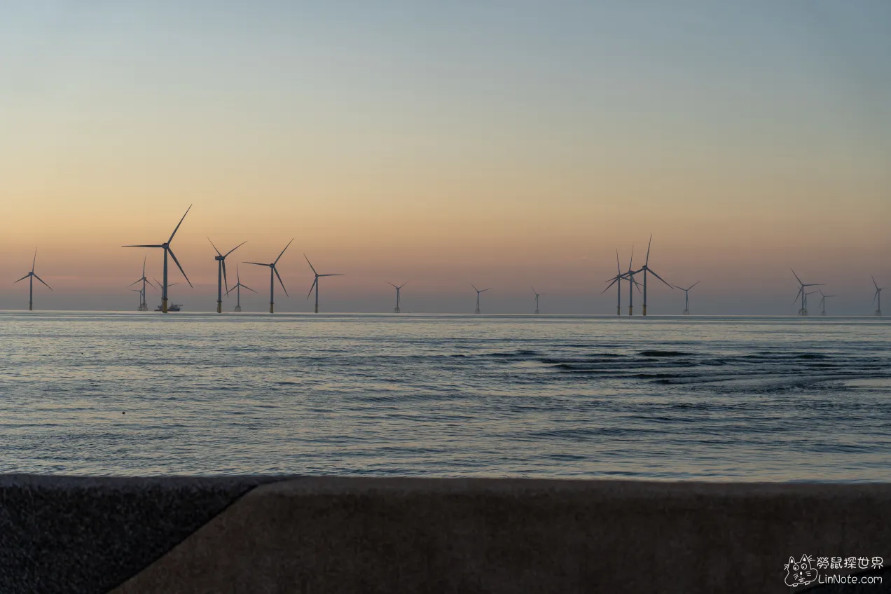 巨大白色風車+海景堤防