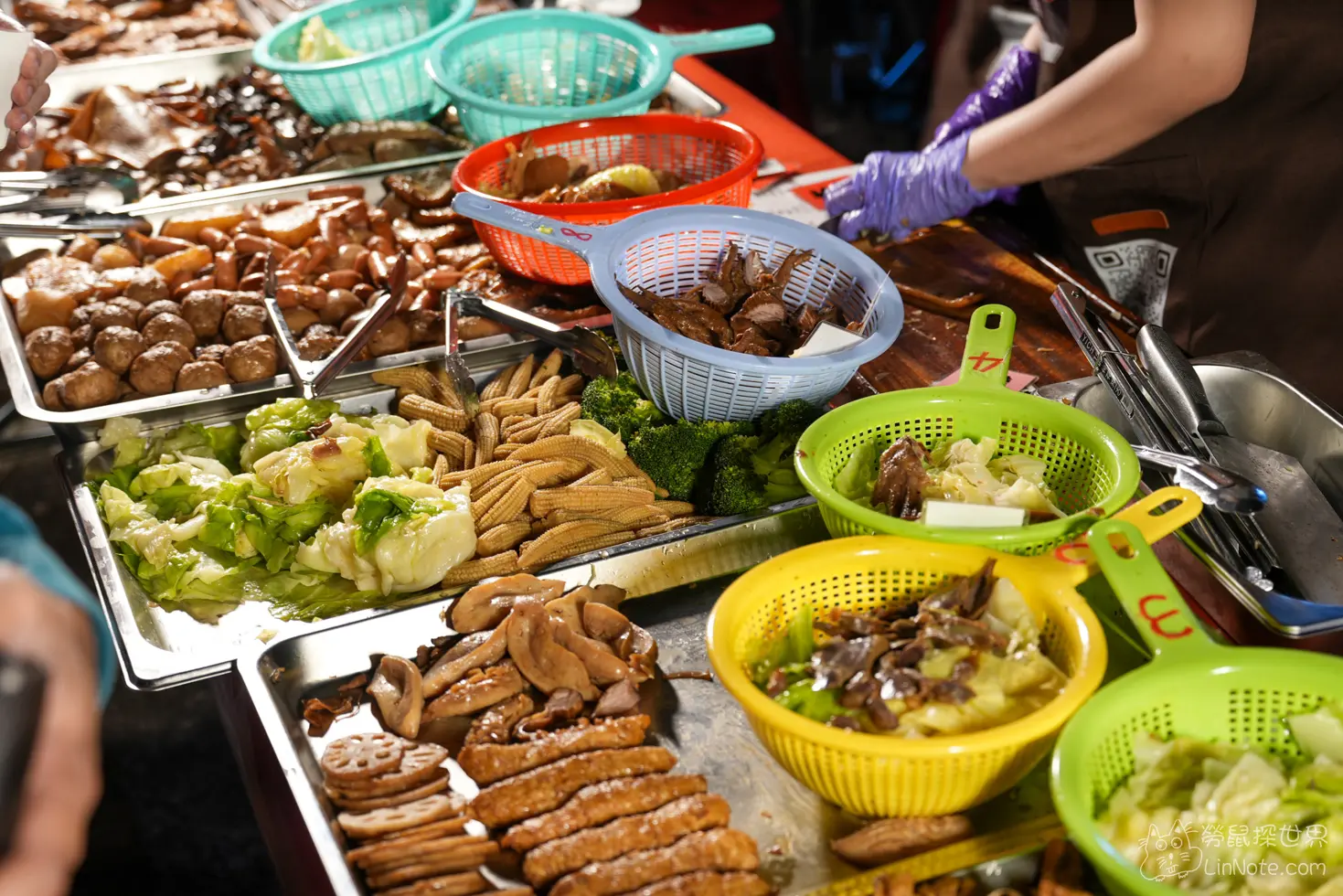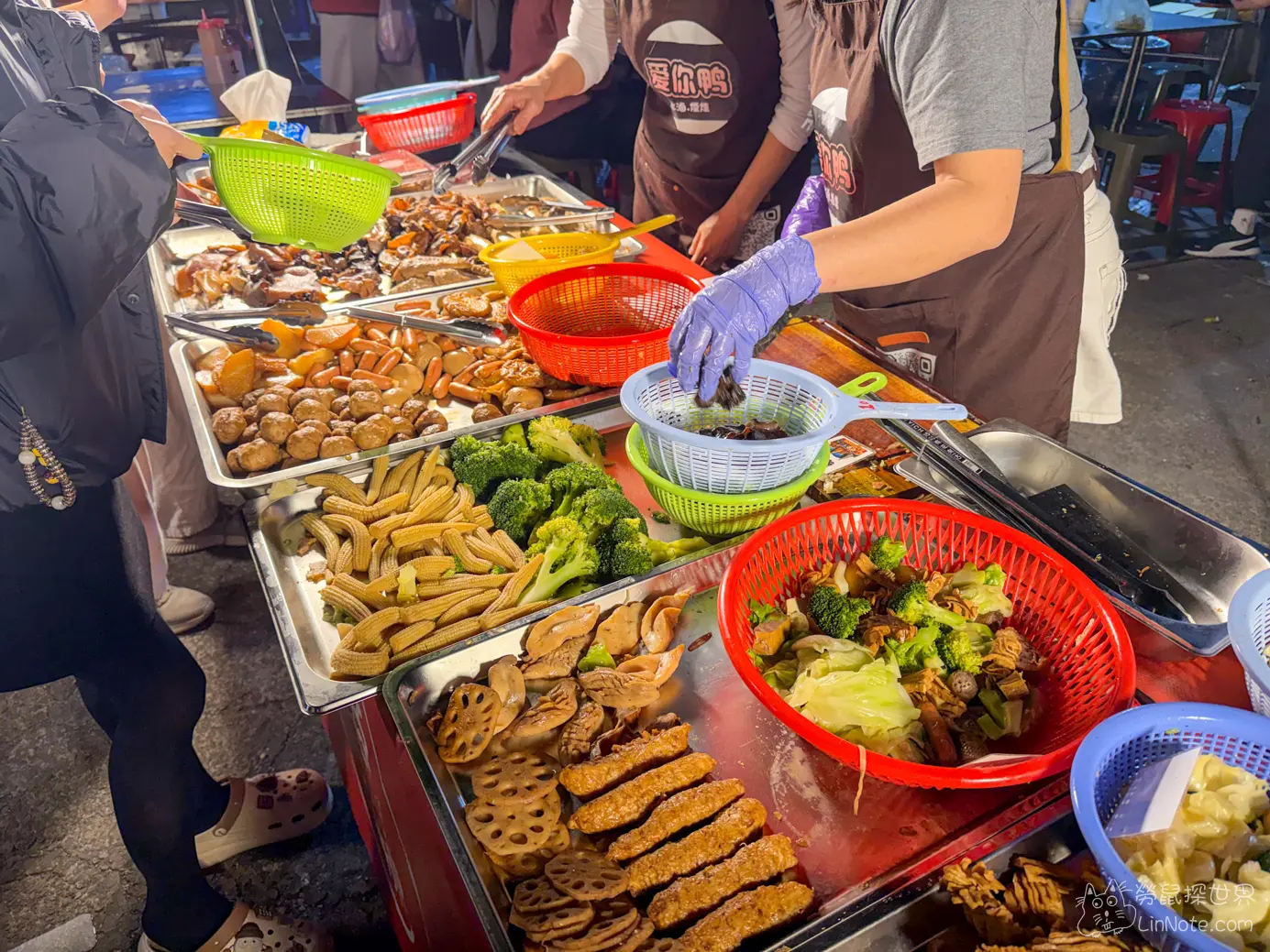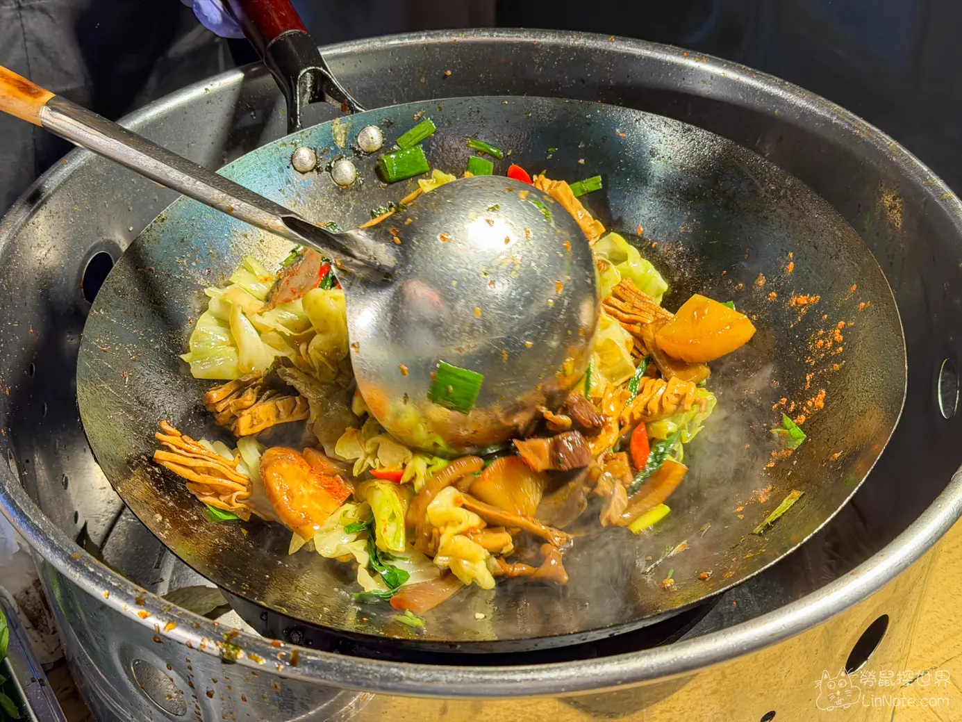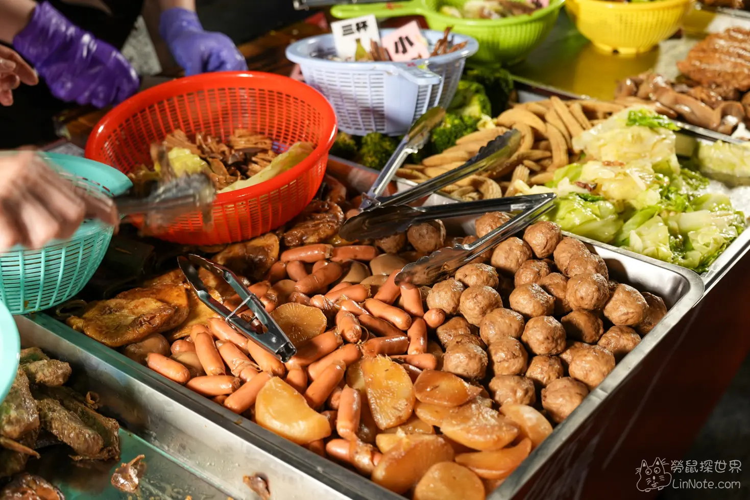 到現場後先夾取滷味,然後再結帳,之後就要等待炒制,可以看到現場滷味擺滿整個檯面,所以建議結完帳後可以先去逛一逛夜市再過來拿取。