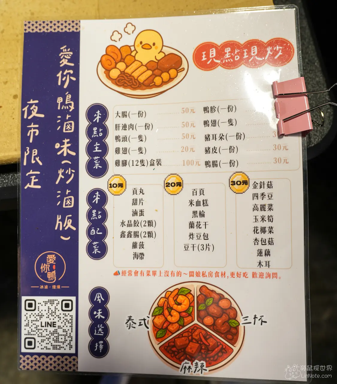 建國夜市裡面居然有炒滷味!?愛你鴨滷味店本身以煙燻、冰滷、麻辣三種口味與真空冷凍即食包聞名,現在也在出沒在建國夜市,比起單純滷味,店家還有台式三杯、四川麻辣、泰式風味三種口味炒制,提供獨特口味的炒滷味。