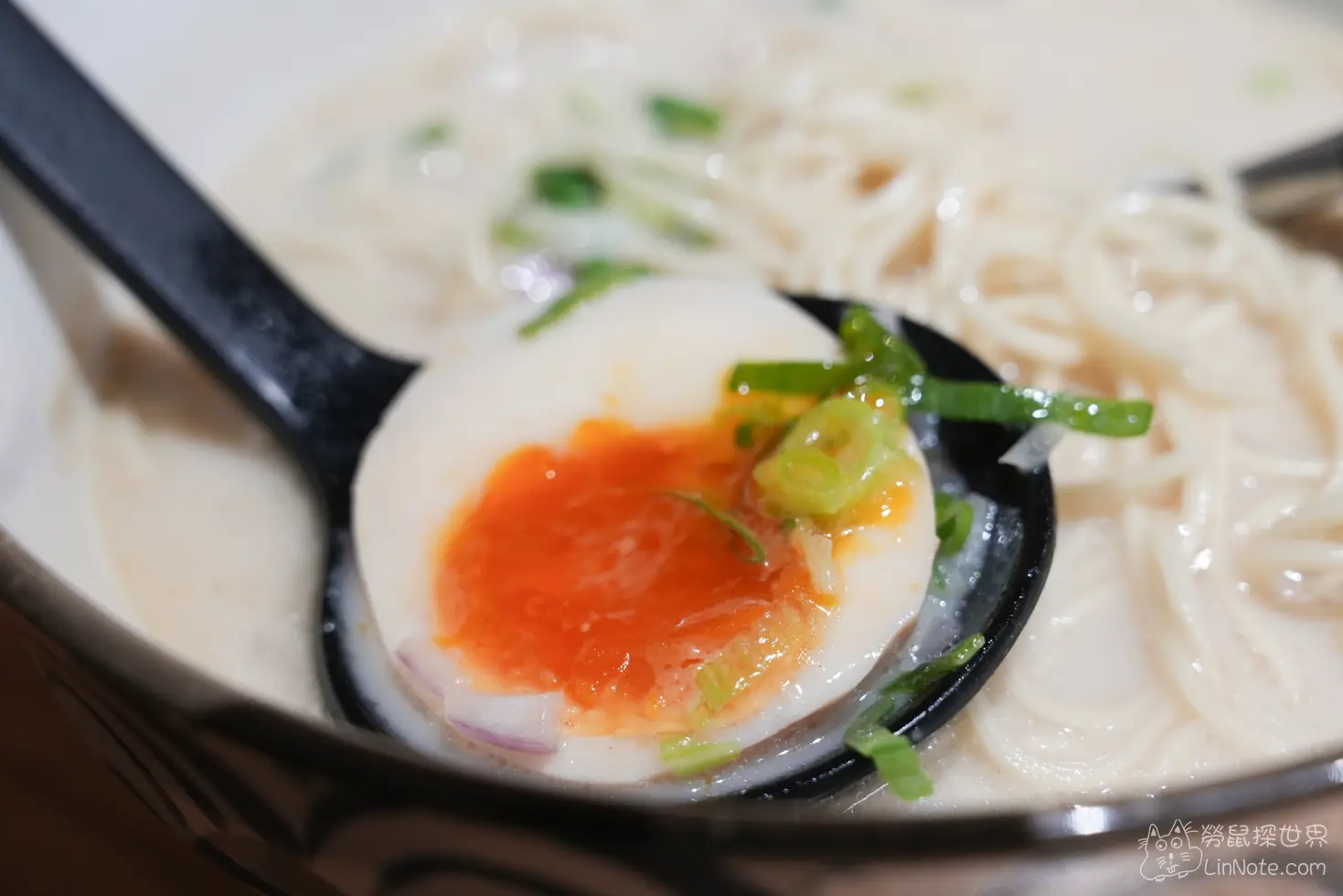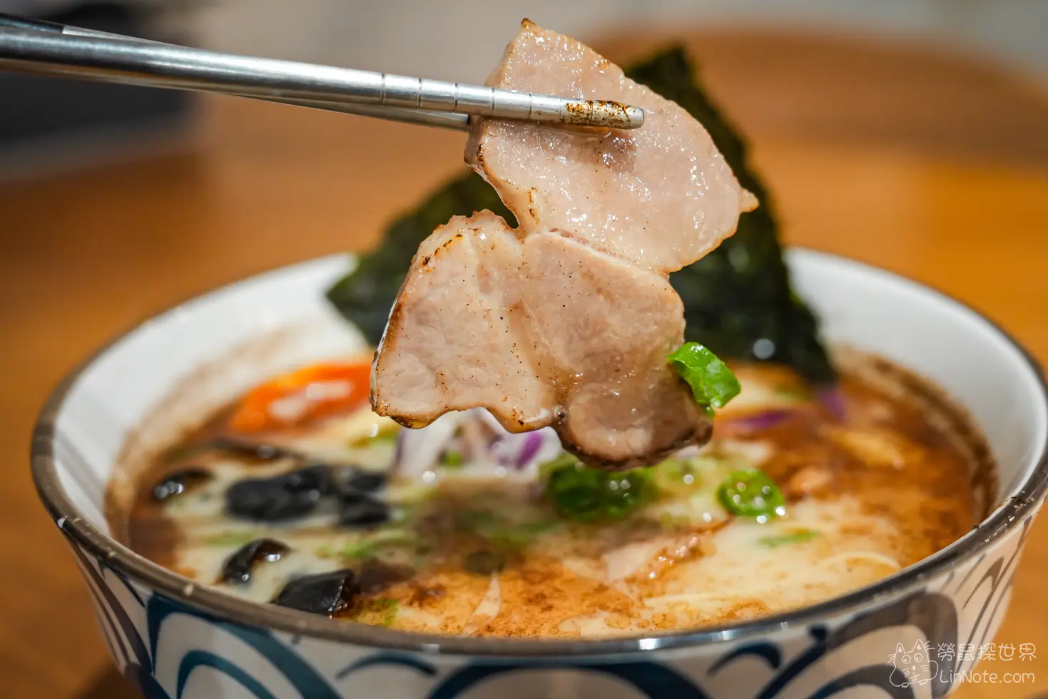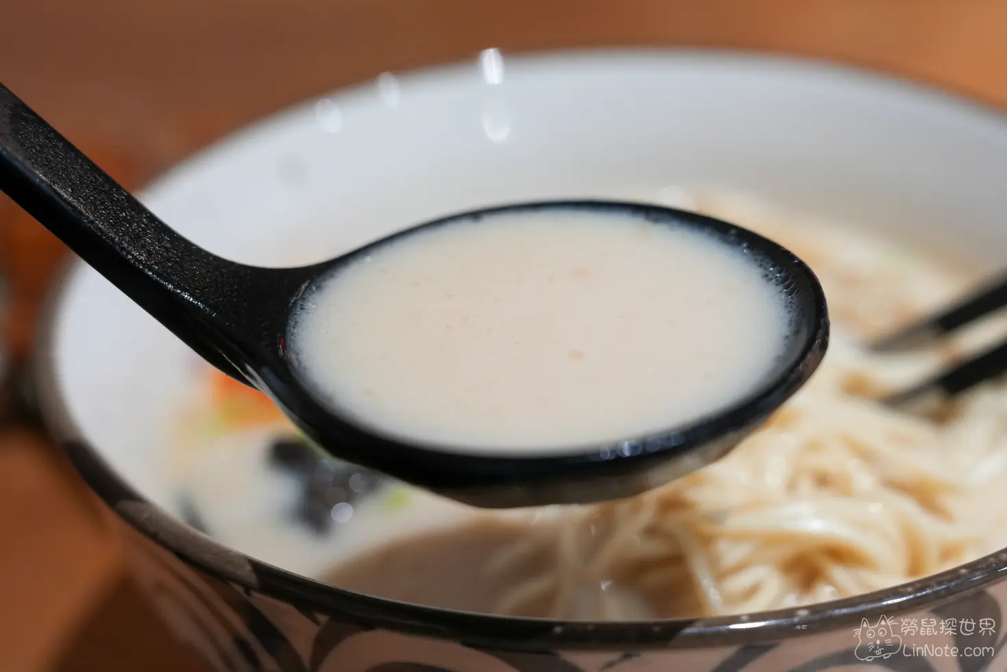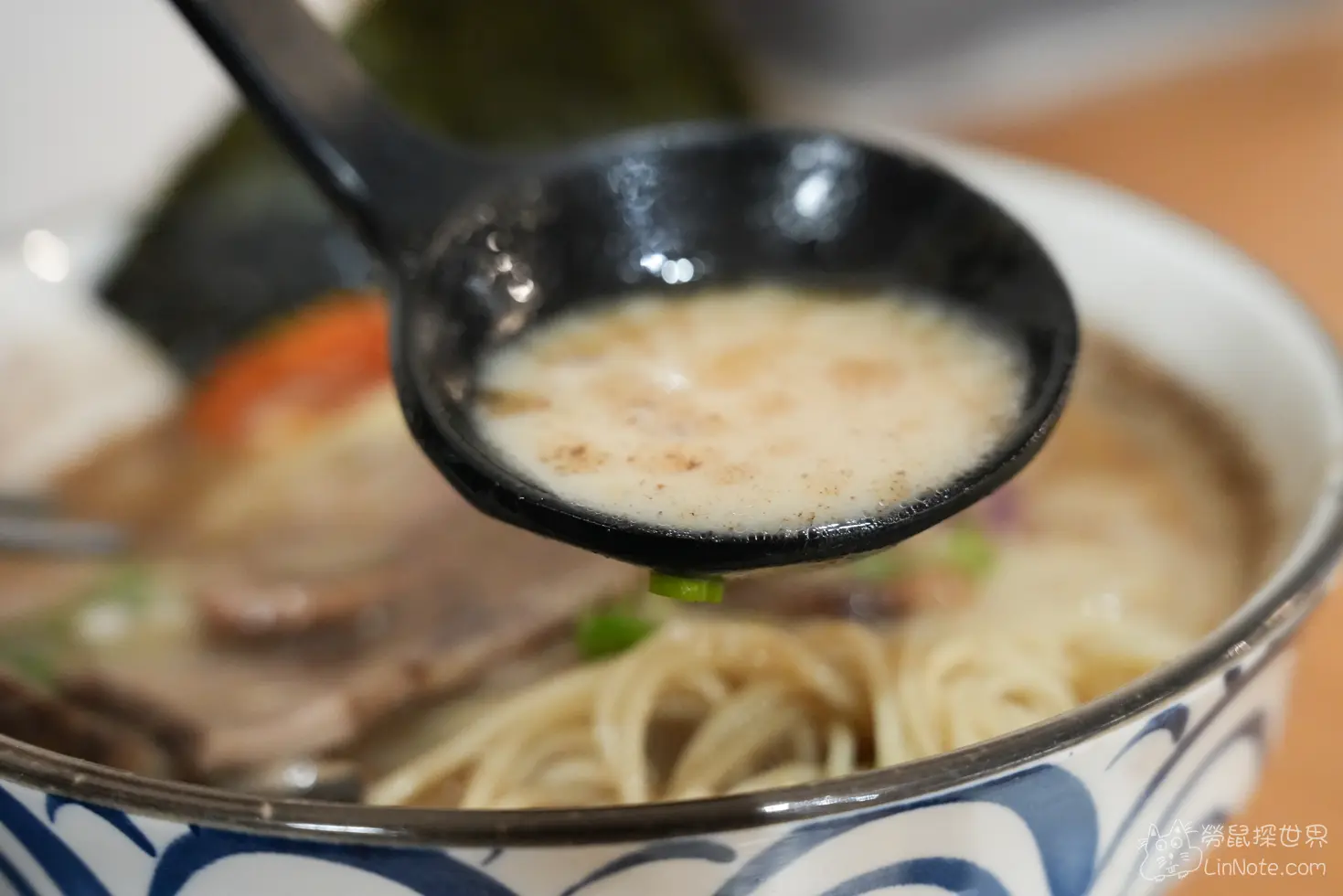 豚骨湯的味道很天然,順口濃郁不油膩,吃得出來真的是沒有添加其他調味料煮成的湯頭,湯裡面還有蔥花、紫洋蔥、小豆苗以及玉米筍。
