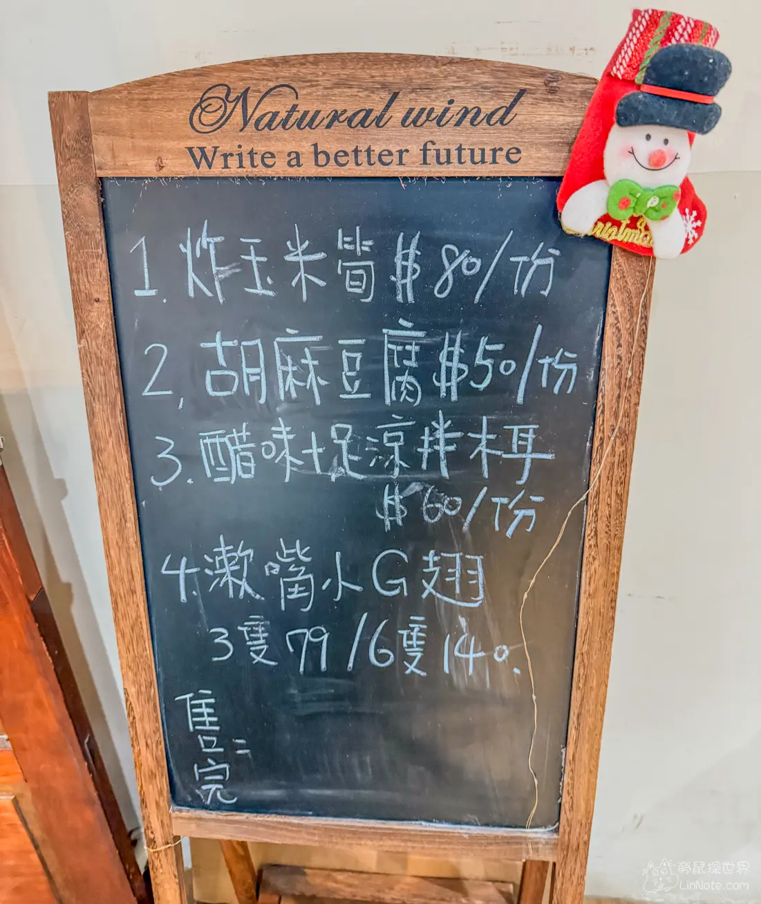 另外除了菜單上面有的品項之外,也可以參考門口放的一些可以點的菜色,這個牌子的右上角還有一個聖誕雪人的襪子也太可愛!