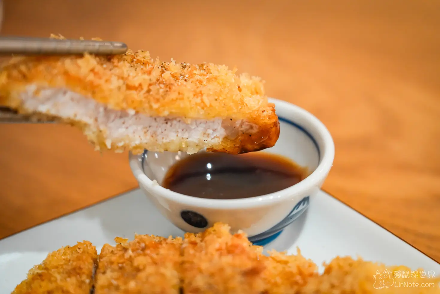 豬排炸的酥脆,麵衣的上面撒了些胡椒調味,肉質細嫩好吃,豬排醬酸酸甜甜的。
