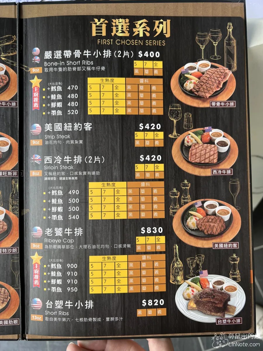 當天店家介紹巨星系列是有特別醃漬過的,品項中的肉質都是相同的,只有差在肉量不同,而如果想要吃肉的原味的話就是選首選系列,可以吃到原汁原味沒有額外調味的牛排。