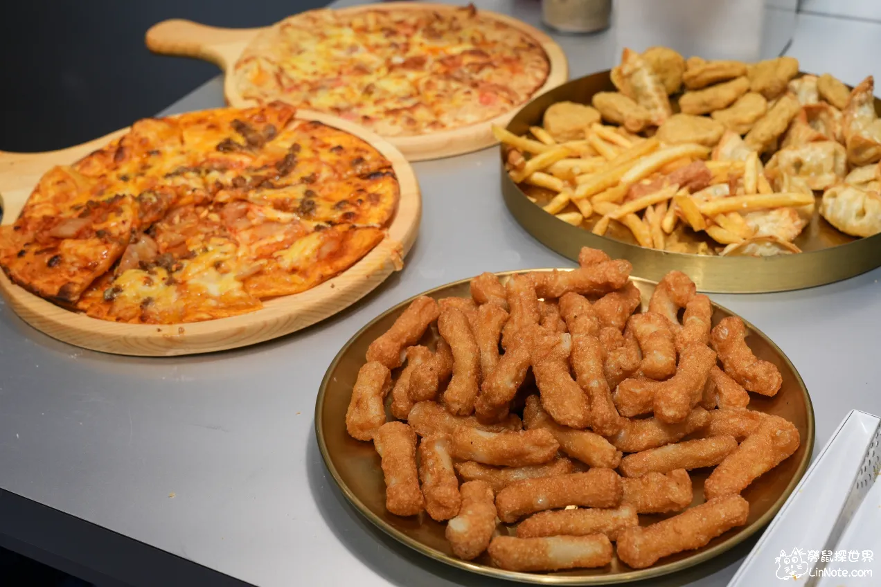 熱食區也很豐盛,居然還有現烤披薩,薄脆的口感真的非常好吃,因為放在加熱的燈具下,所以不管什麼時候吃都是又熱又脆的口感。