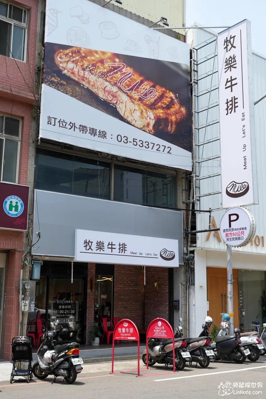 牧樂牛排的外觀很有質感,以純白色的招牌及簡約設計,看了就覺得牛排很讚!