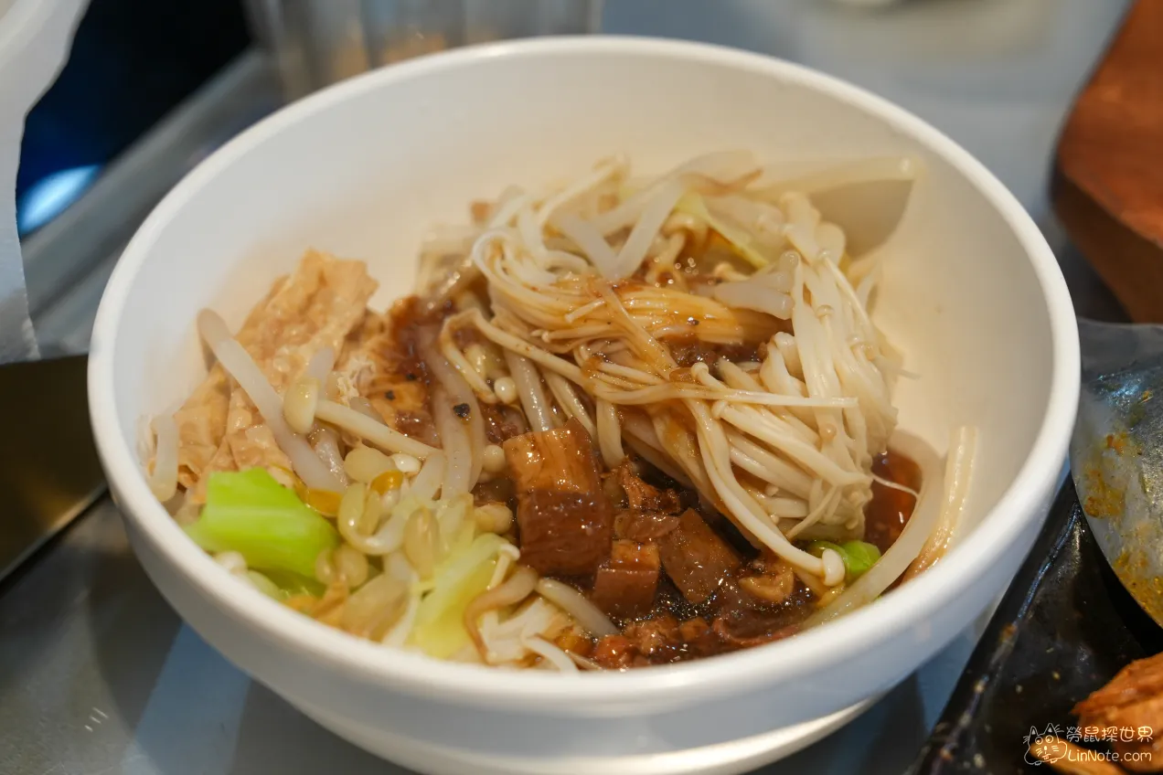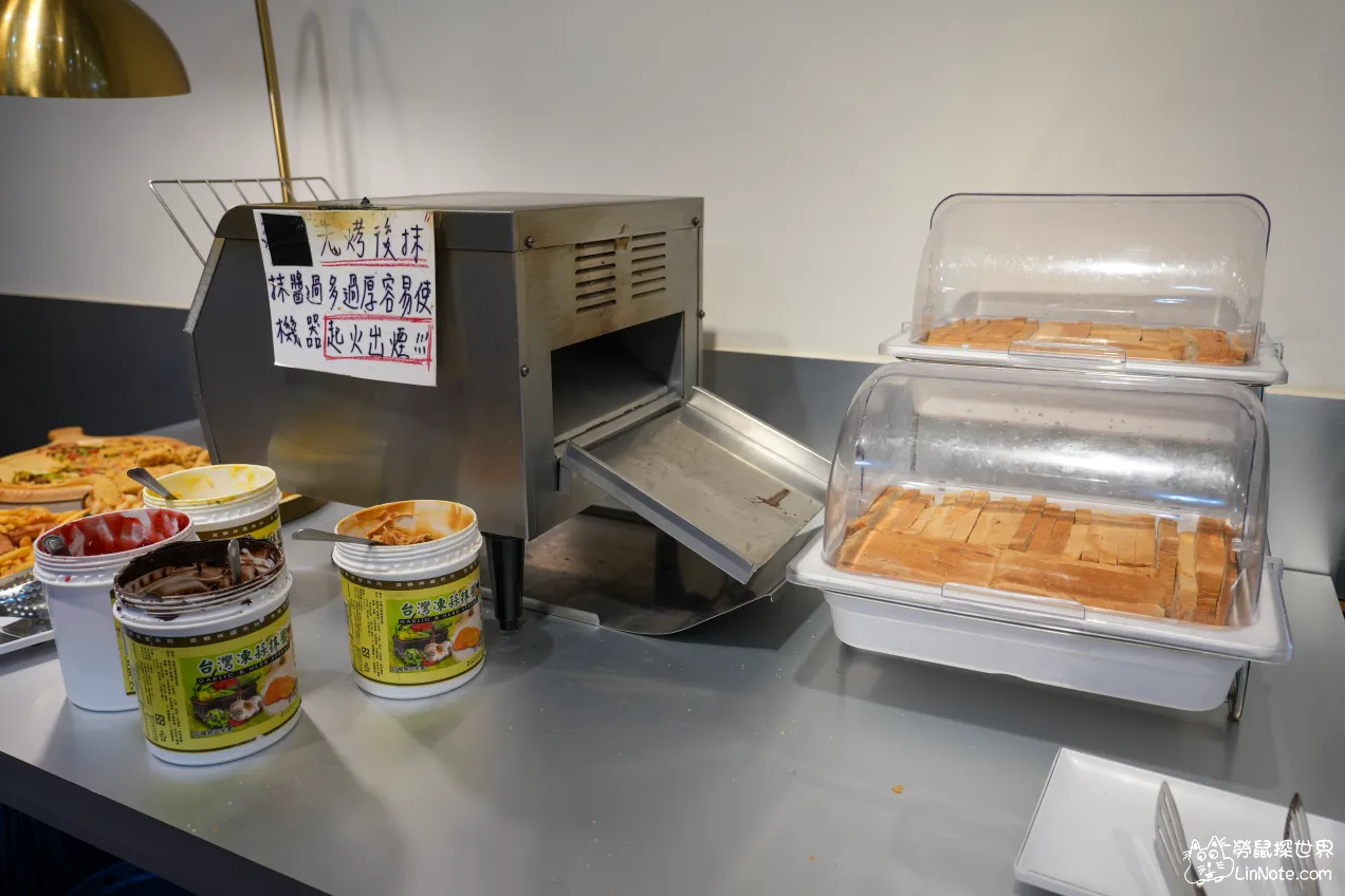 旁邊還有自助煮麵機,可以燙青菜及王子麵,若不吃生菜沙拉也無妨,現煮青菜選項讓蔬食攝取更加均衡,旁邊還有肉燥可以加,有效補足一般牛排店蔬菜選項不足的情況!