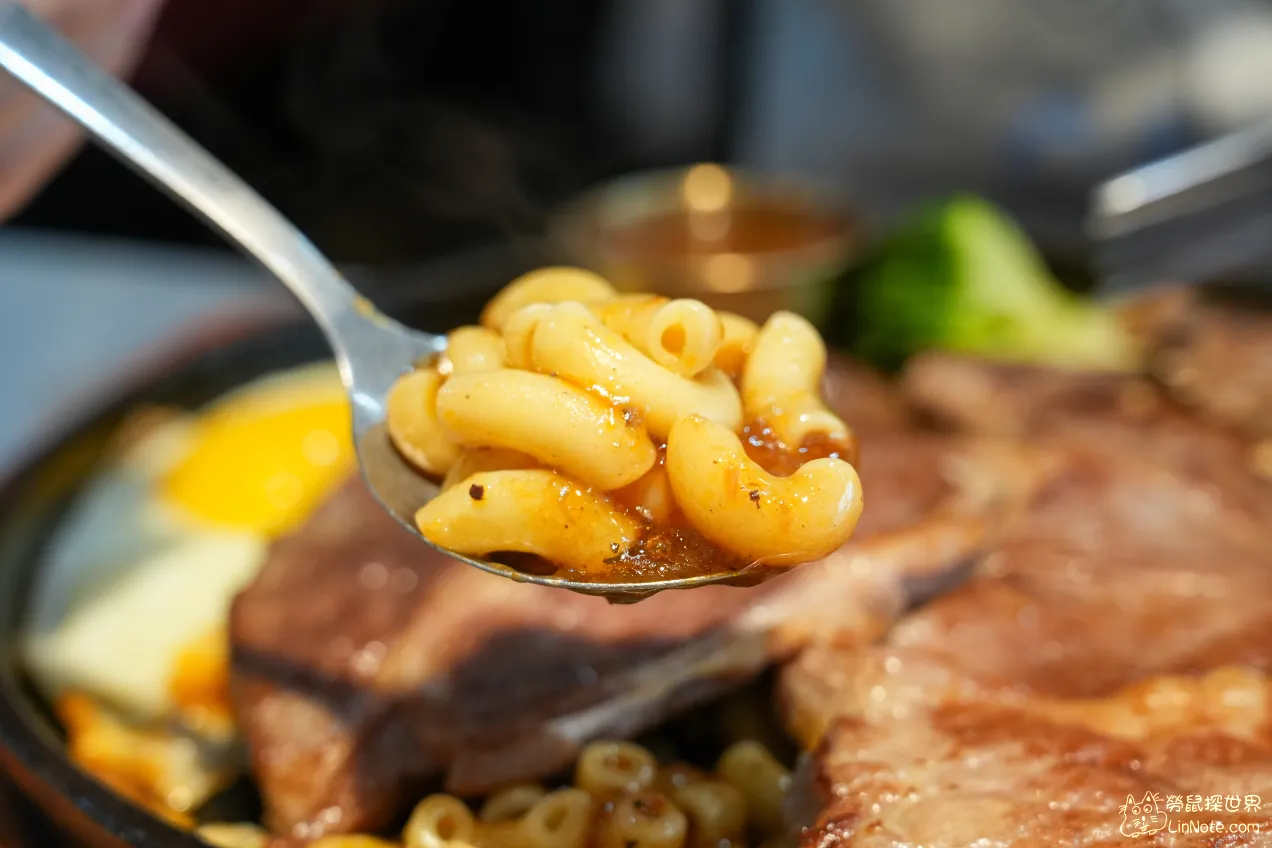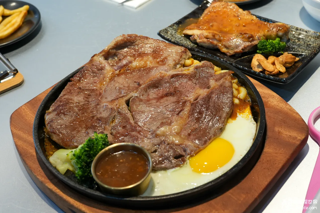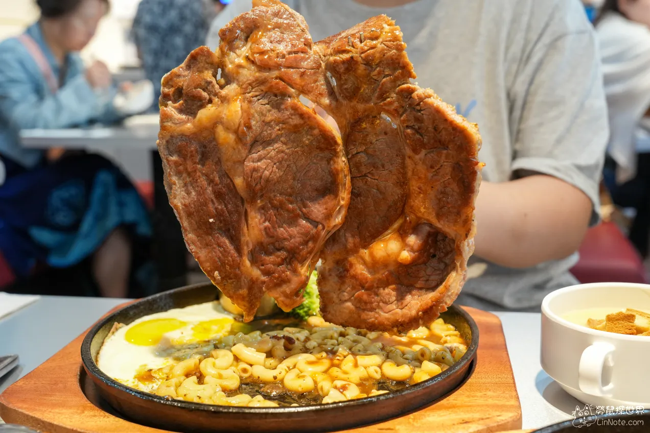 每次看到這種超巨大牛排都忍不住點來吃,這塊Max巨牛排絕對是大胃王與肉食控的必選!這塊牛排份量超乎想像,鋪滿整個大圓鐵盤,光視覺衝擊就令人驚嘆。肉質紮實、帶有濕潤肉汁,入口飽含濃濃牛肉香,非常有台式牛排的經典風味。
