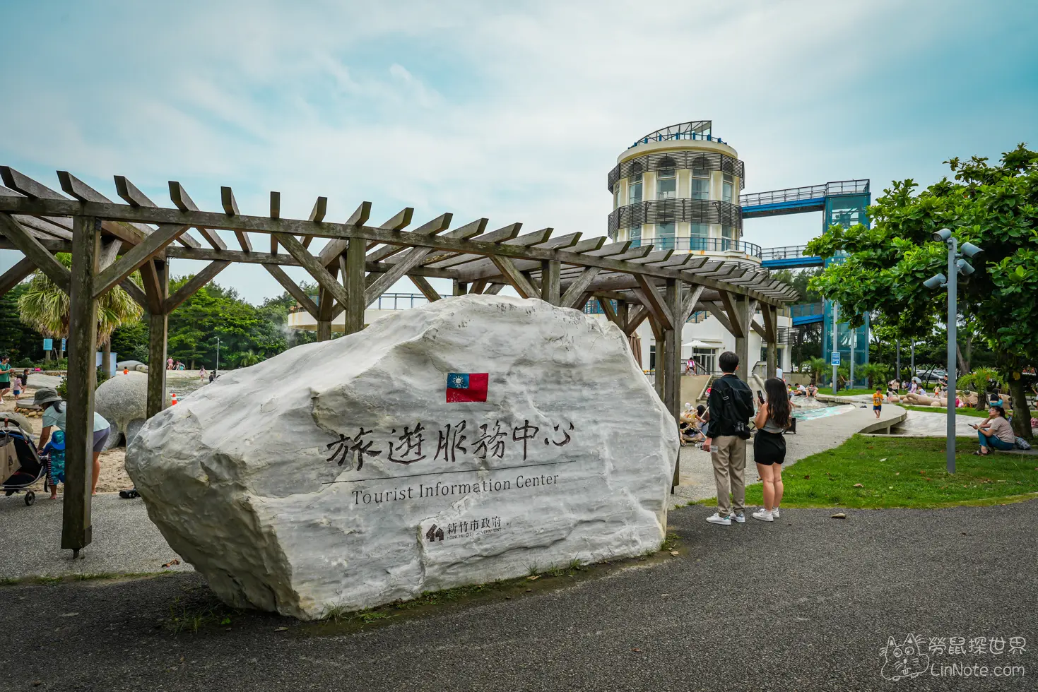 南寮旅遊服務中心裡有一個標誌性的溜滑梯,高約3層樓,由鐵管組成,對小朋友而言,這個溜滑梯絕對充滿吸引力,讓人玩得不亦樂乎。不過這個溜滑梯有年齡使用限制,只能由5~12歲的小朋友玩耍,不然我也想溜一下。
