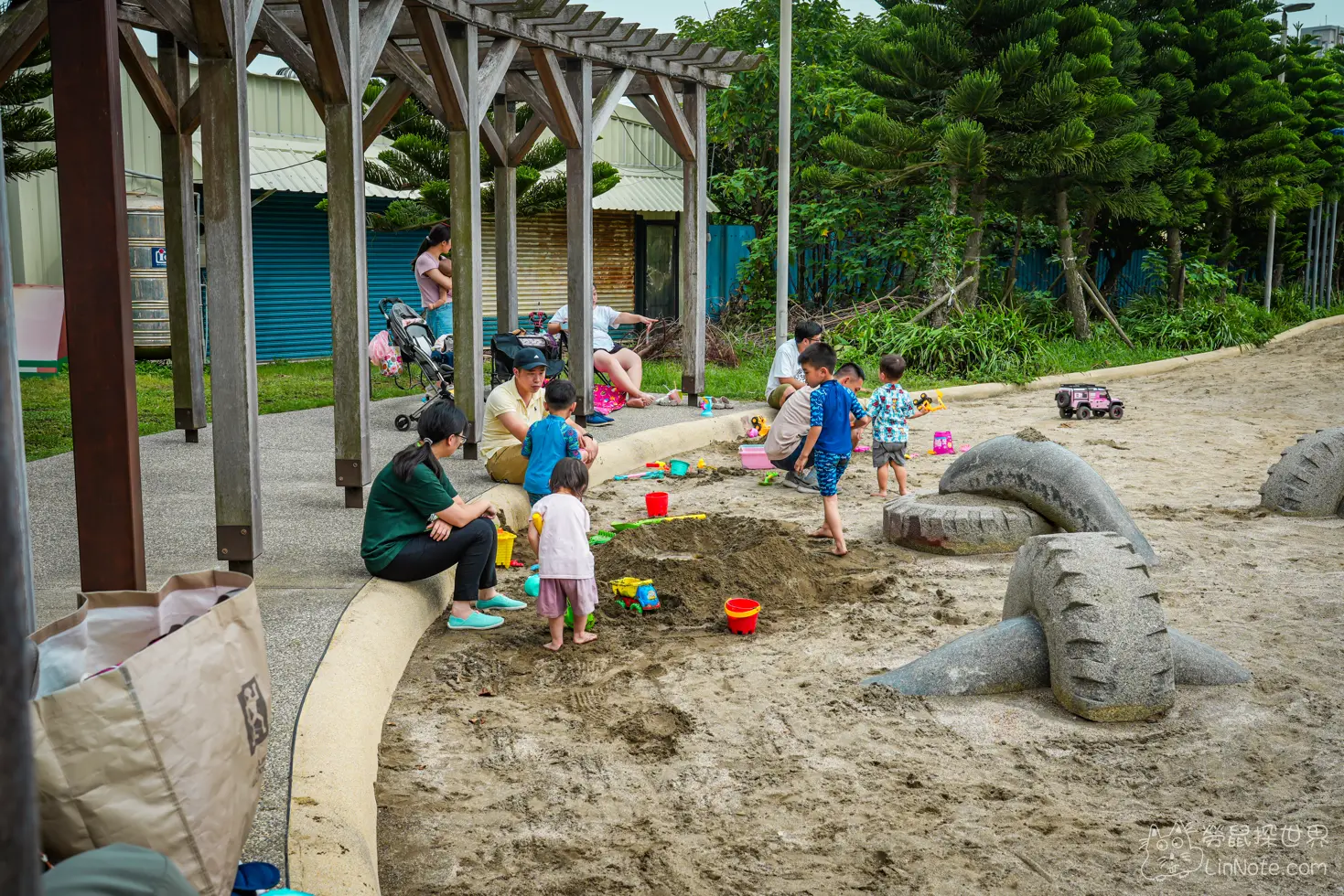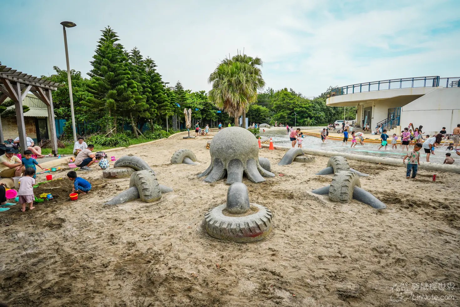 服務中心前有沙坑及戲水池,非常好玩,有很多遊客在這裡遊玩。