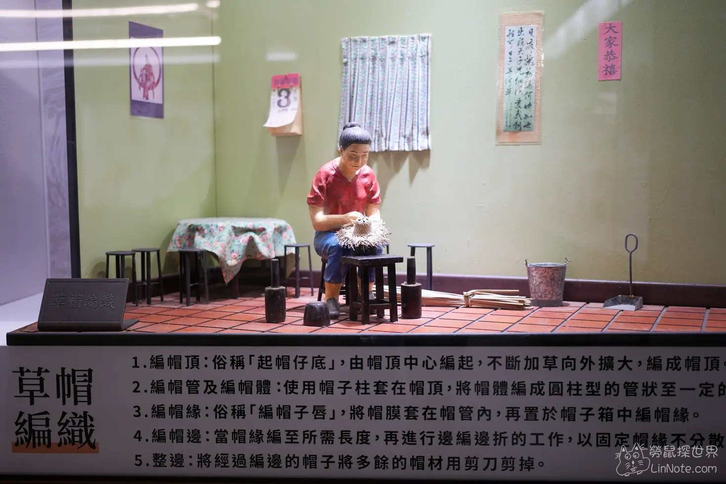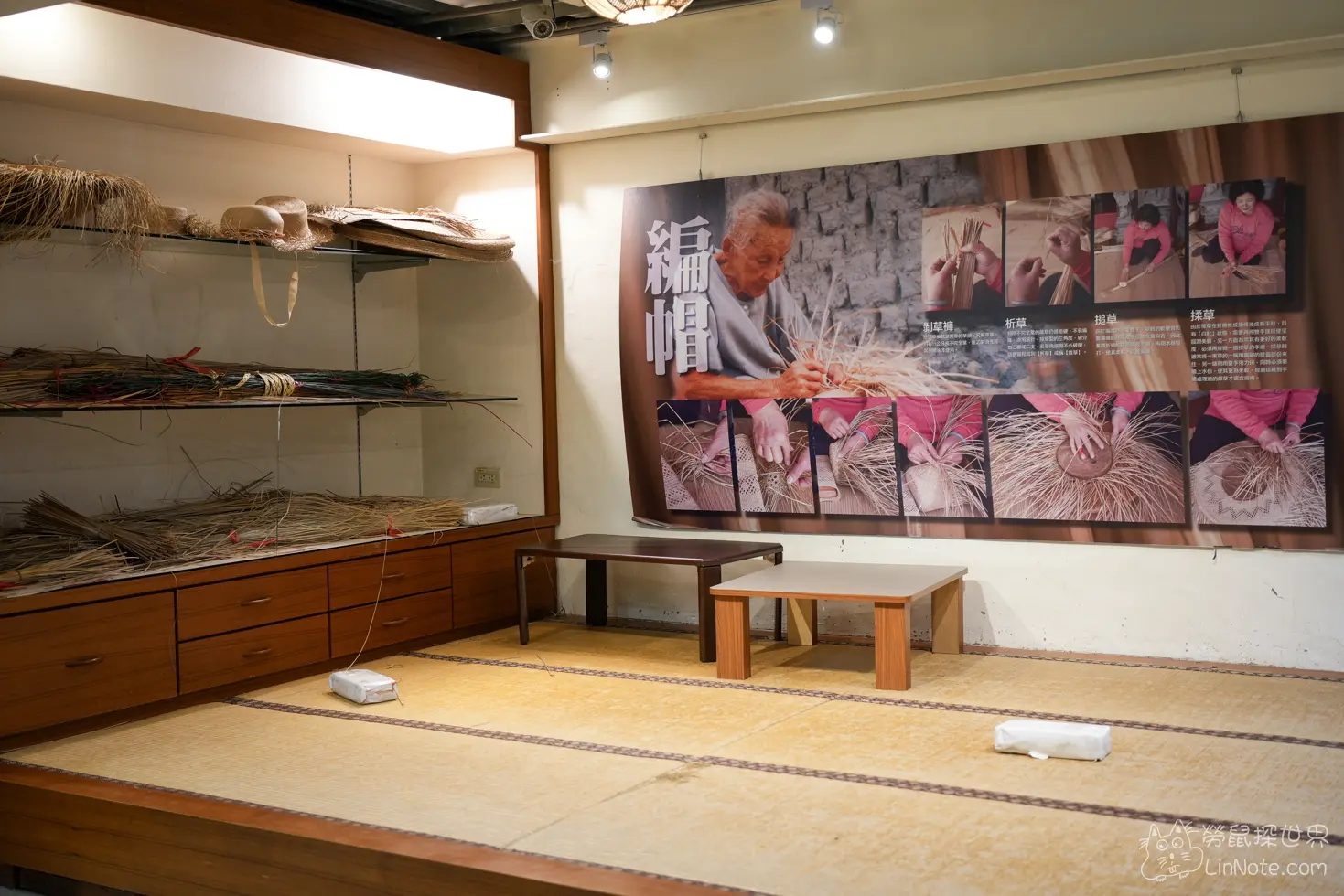 館內分為不同的主題區,包括帽蓆文化區、農村古文物展示區、米文化區等等,最有趣的是編織示範區和DIY教室,不僅可以親眼看到當年婦女如何將柔韌的藺草編織成精美的草蓆與草帽,還可以自己動手試試,感受那股手工編織的滿足感哦。