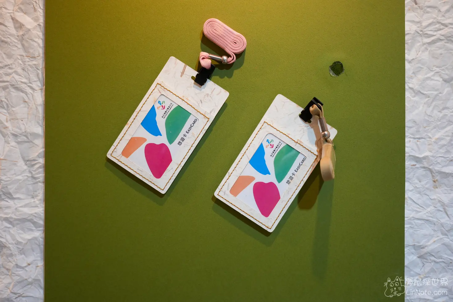 這個作品是比較貼近我們生活的,一張悠遊卡卡套與藺草草紙結合,並用手工線縫製。