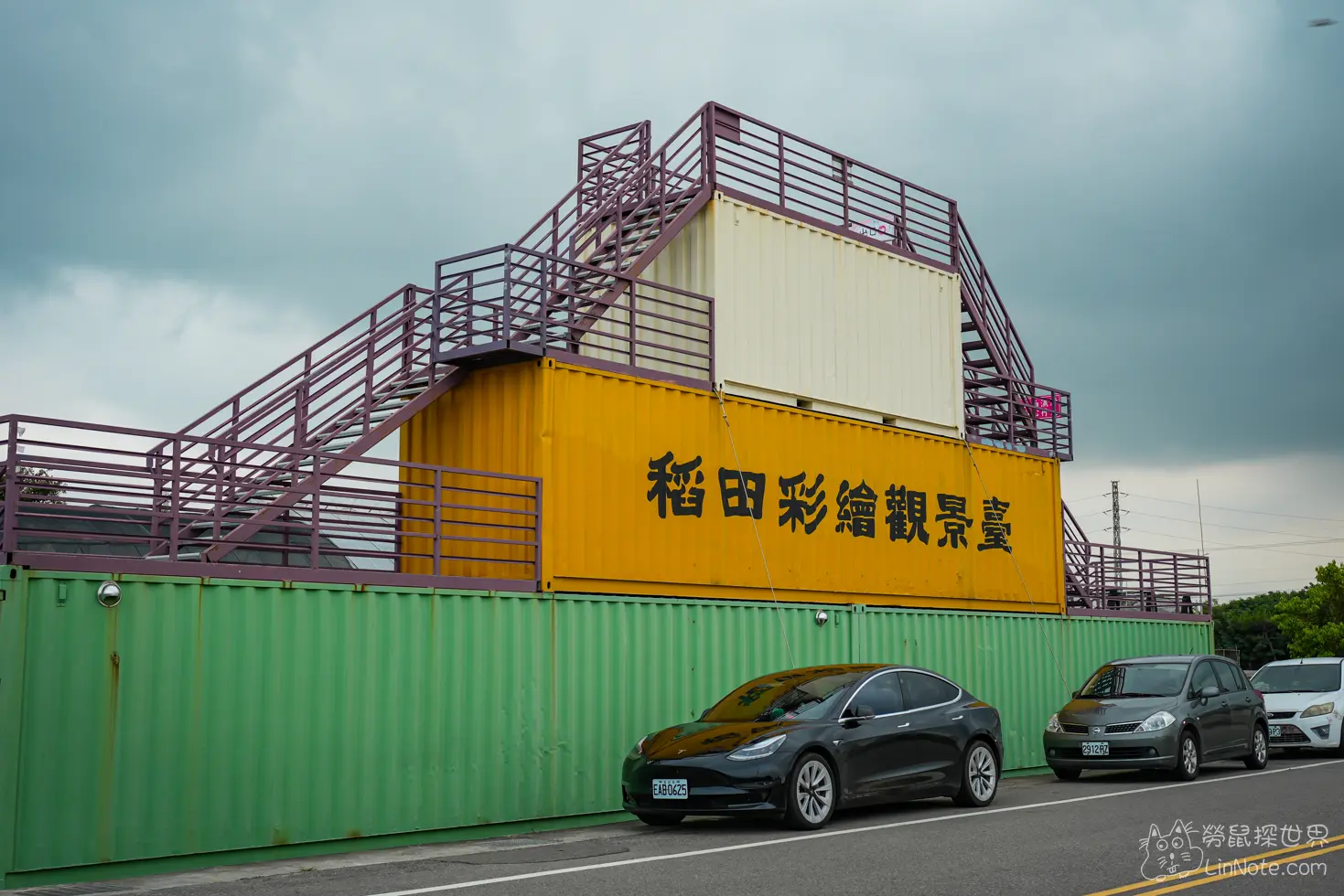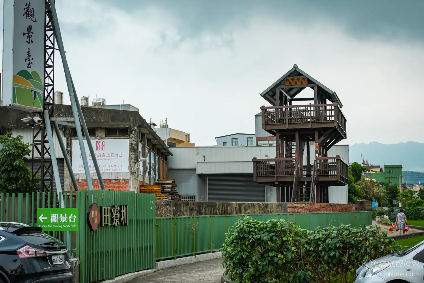 後面還有一個觀景台,不過當天是不能上去的,可能不是稻田彩繪的活動時期吧。