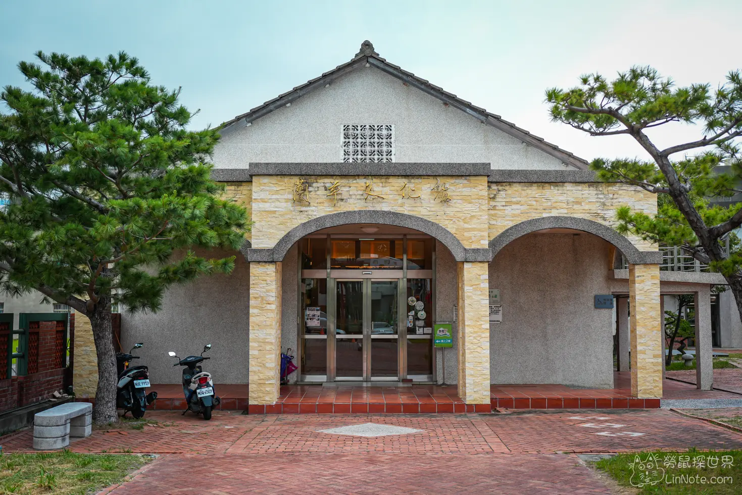藺草文化館外部就可以感受到是個充滿歷史感的地方。這棟建築外觀古樸,淺黃色的磚牆與灰色的屋頂。