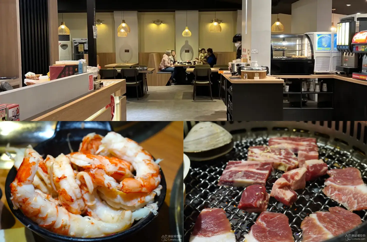 一喜燒肉提供燒肉吃到飽,主打多樣選擇,包括超大大白貝、翼板牛肉、沙朗牛、梅花豬、帶骨牛小排、戰斧羊、天使紅蝦、鯛魚下巴等。其中大白貝的尺寸驚人,比50元硬幣還大,但烤起來較費時,口感鮮美。天使紅蝦新鮮飽滿,吃起來相當過癮。翼板牛肉鮮甜多汁,值得推薦。自助吧還有杜老爺冰淇淋和甜點,選擇豐富。