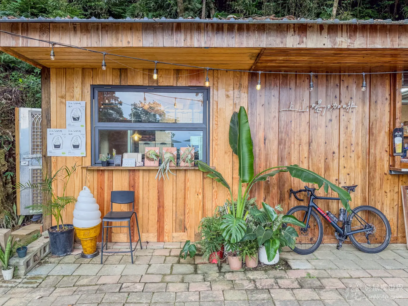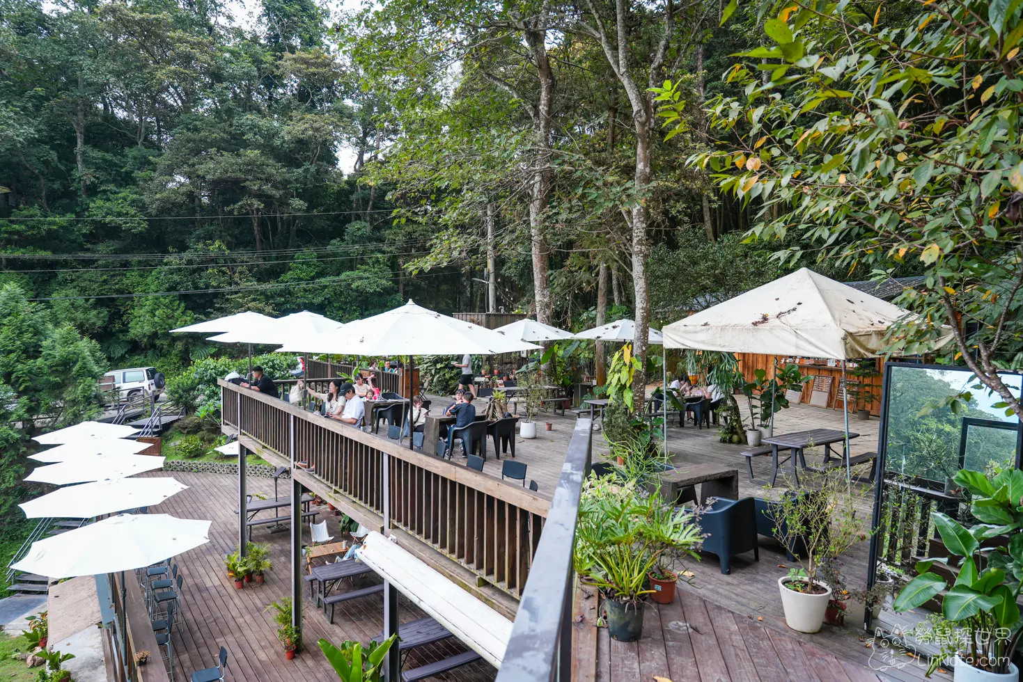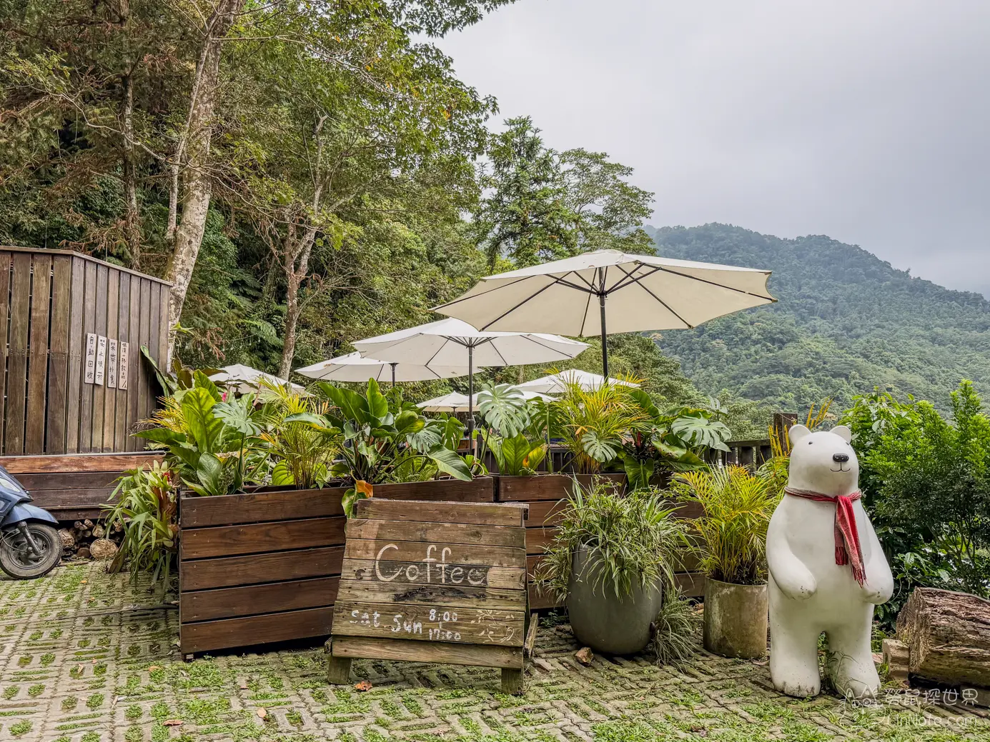 上山喝咖啡的座位已戶外為主,基本上都是遮陽的位置,雖然座位沒有冷氣設備,不過因為位在半山腰,所以氣溫相當涼爽,坐在這裡喝咖啡、感受山風吹拂,格外愜意。