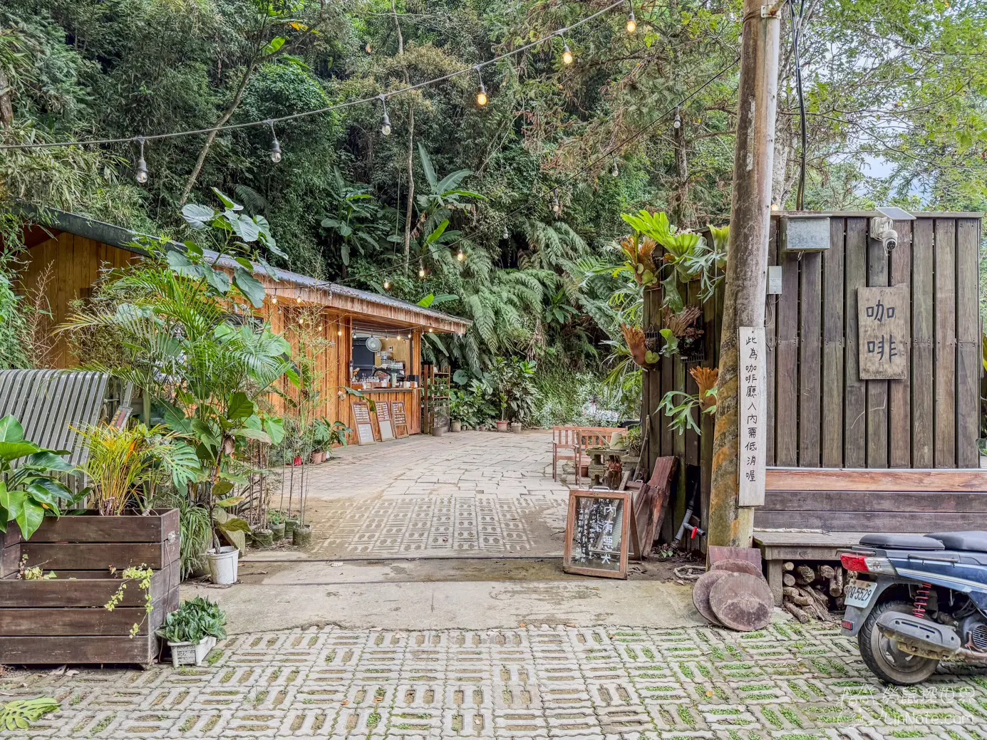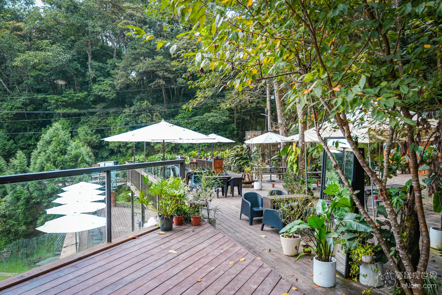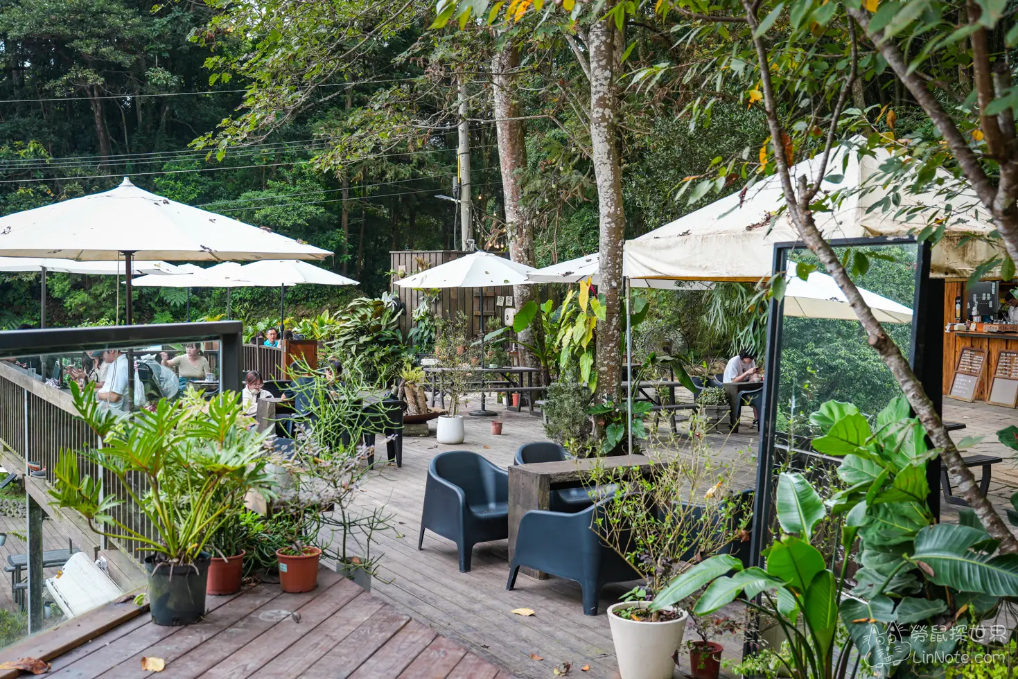 上山喝咖啡的座位已戶外為主,基本上都是遮陽的位置,雖然座位沒有冷氣設備,不過因為位在半山腰,所以氣溫相當涼爽,坐在這裡喝咖啡、感受山風吹拂,格外愜意。