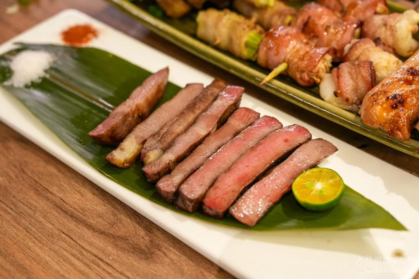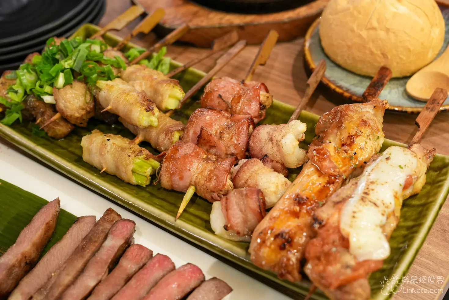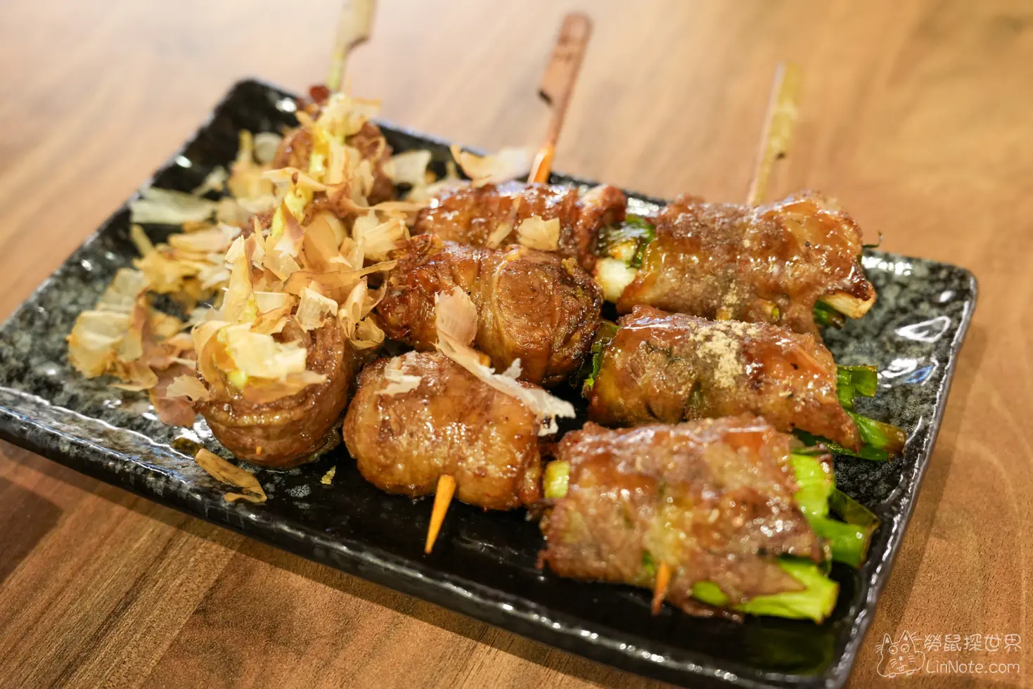 老饕蔥燒豬肋眼 NT180元&蘆筍豬肉串 NT110元&培根麻吉燒 NT55元&照燒雞肉串 NT55元&明太子雞腿肉串 NT75元