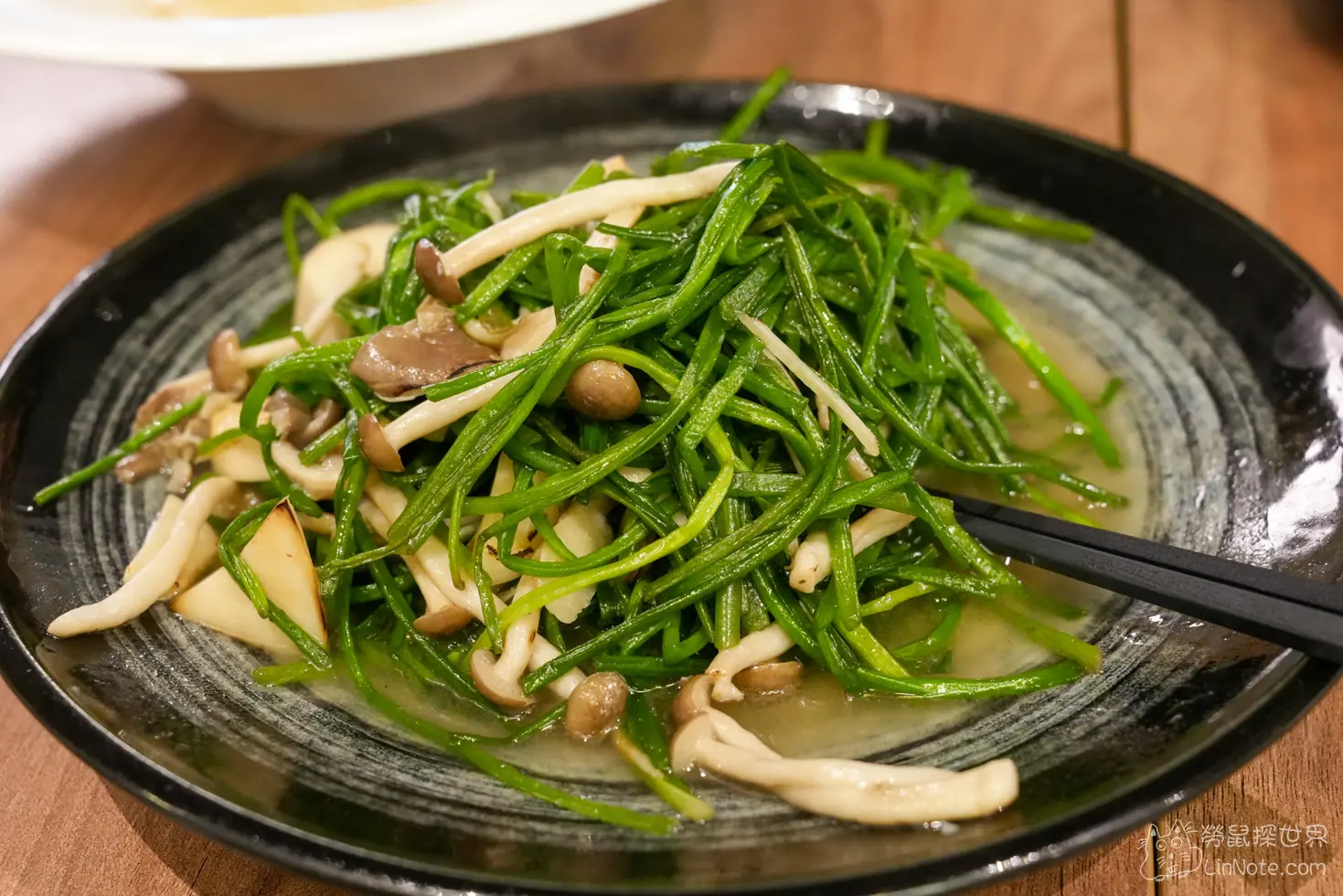 水蓮配著鴻禧菇一起清炒,味道調味適中,水蓮搭配鴻喜菇的清脆口感令人印象深刻。