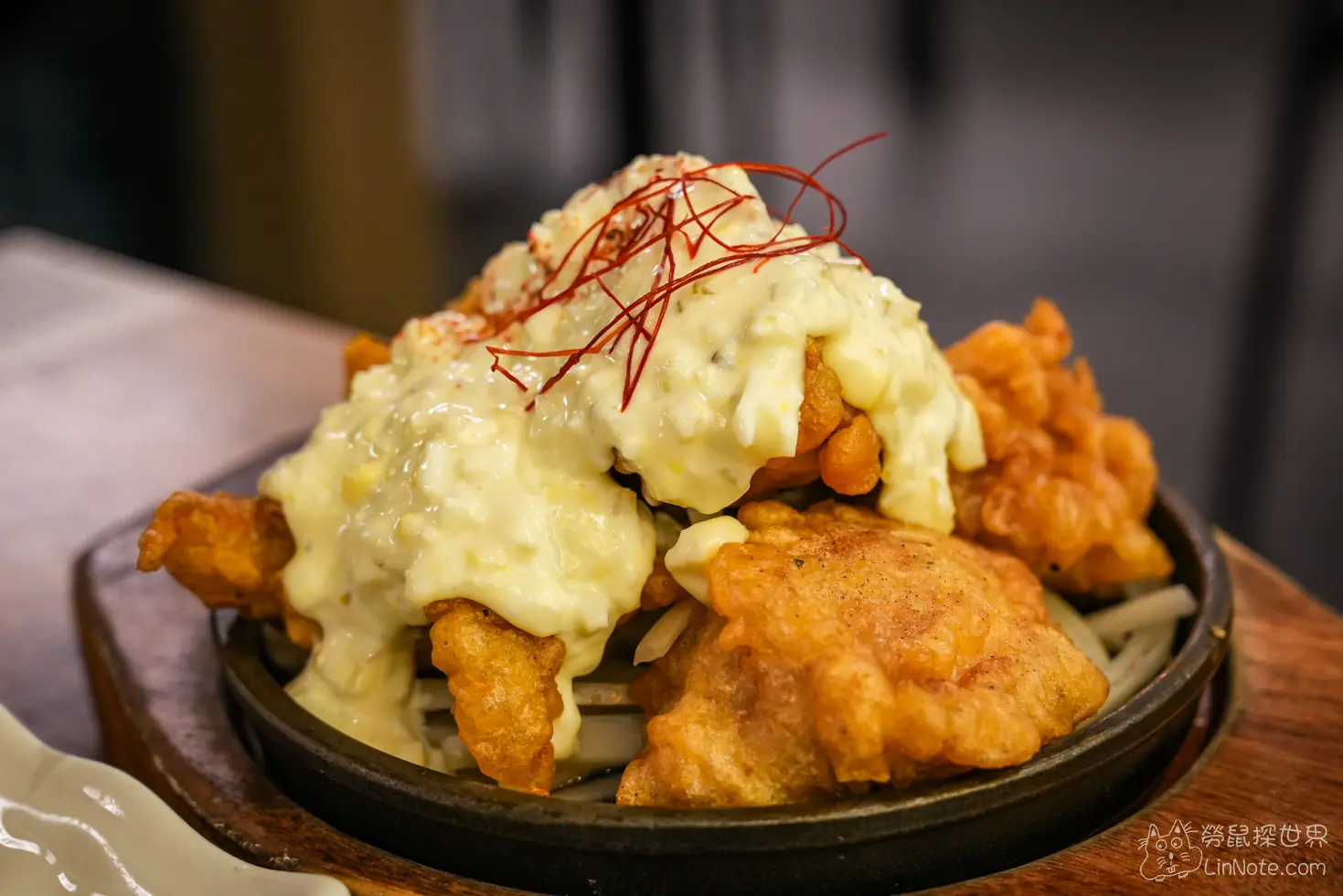 南蠻炸雞非常大一塊,雞肉本身非常的甜,淋上日式的酸感的沙拉醬跟大量的洋蔥,吃起來很讚。