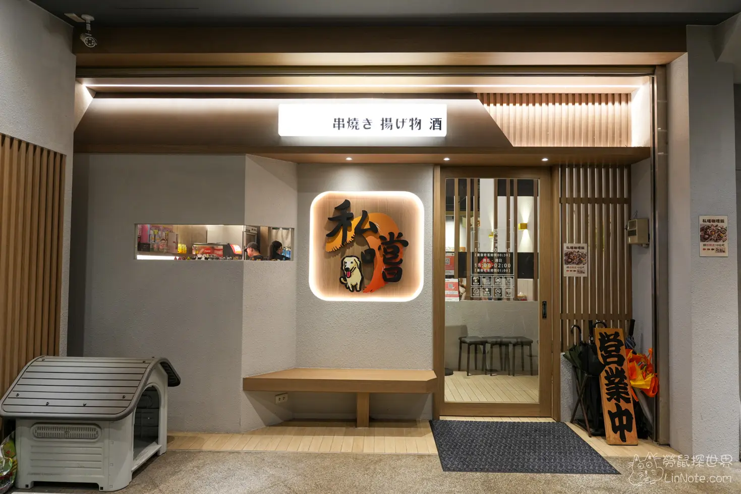 私嚐串燒居酒屋的外觀是偏現代的日本風,乾淨利落的清水模加上木質裝潢,看起來非常舒適。門口有一間有狗屋,可惜當天沒有看到狗狗,不知道狗狗是不是放假囉?