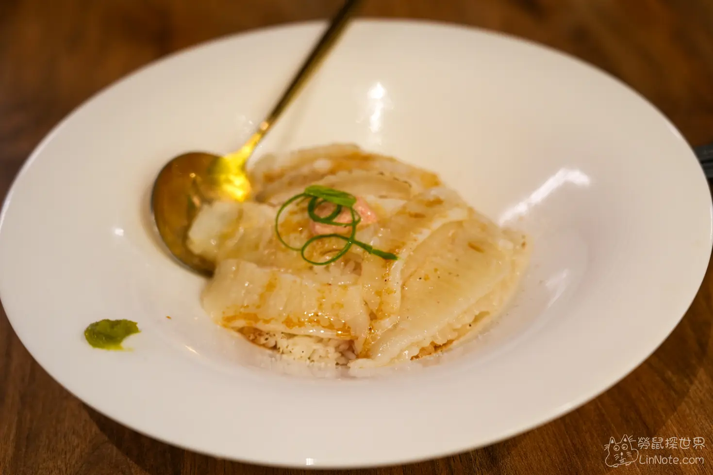 炙燒比目魚鰭邊飯的比目魚真的油脂非常豐厚,一嘴下去滿口油脂,入口即化,比目魚肉細緻鮮甜,配上下面的醋飯非常美味。