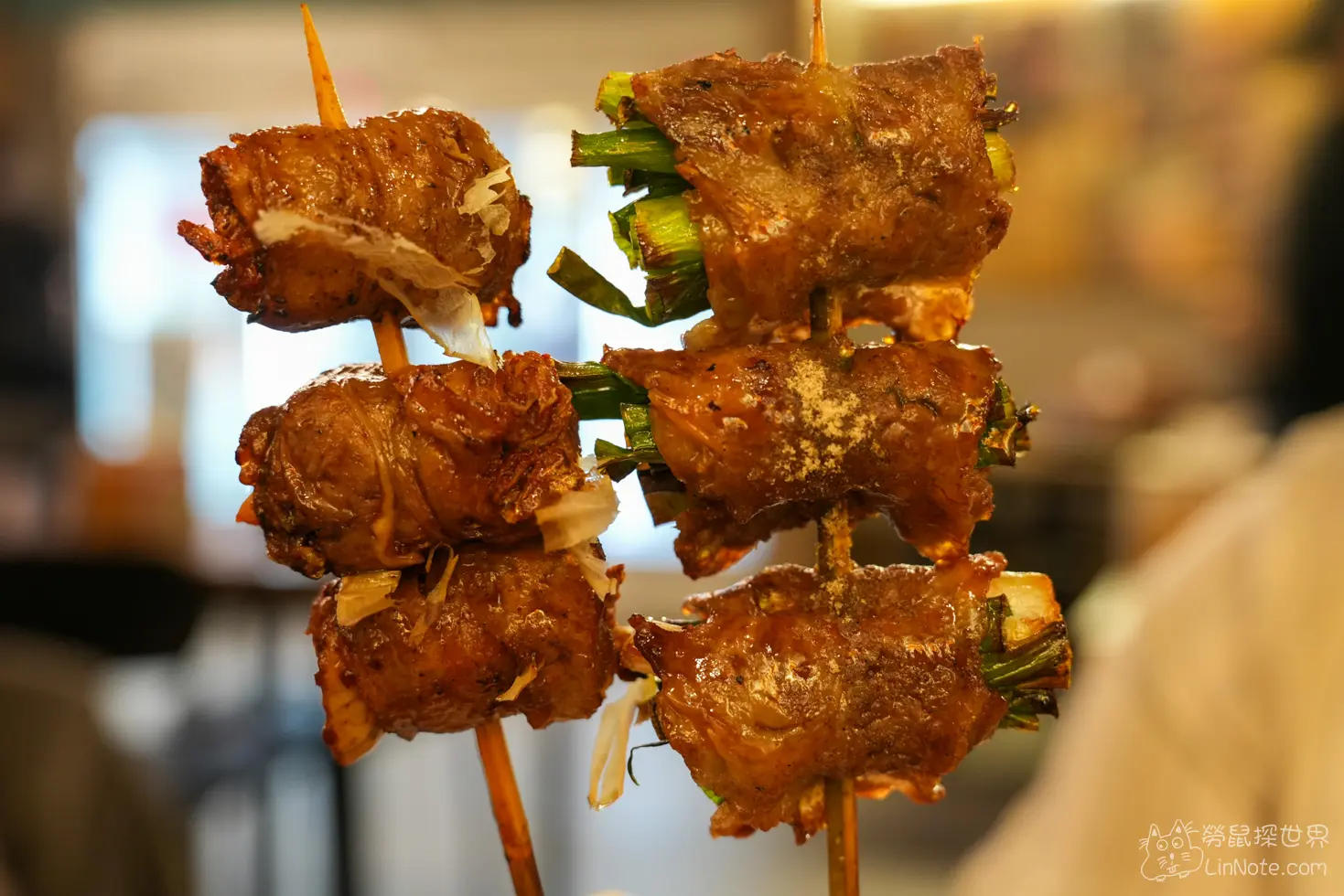 最先上桌的是牛肉三兄弟!青蔥牛肉串可以說烤肉串必點的王者,滿滿辛香青蔥配上油脂豐厚的牛肉片,真的太爽了。