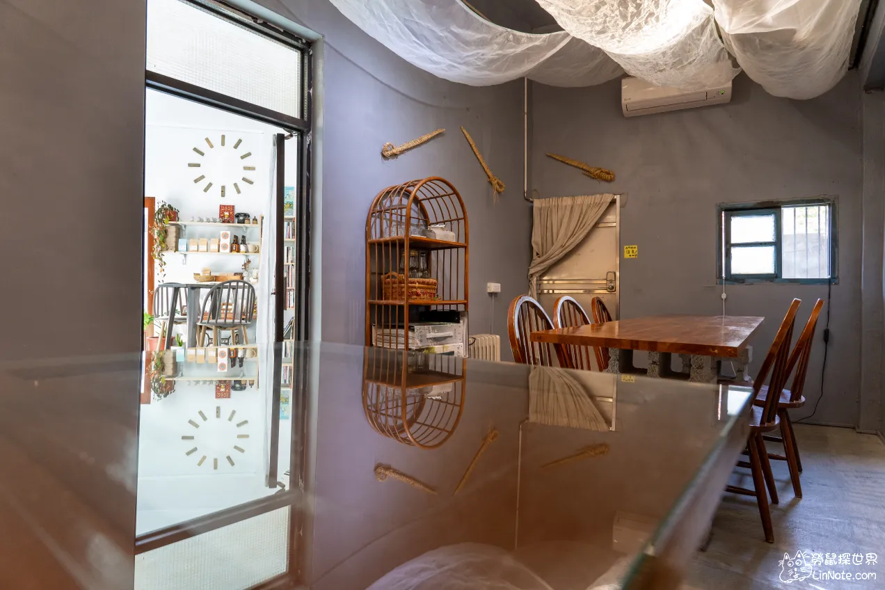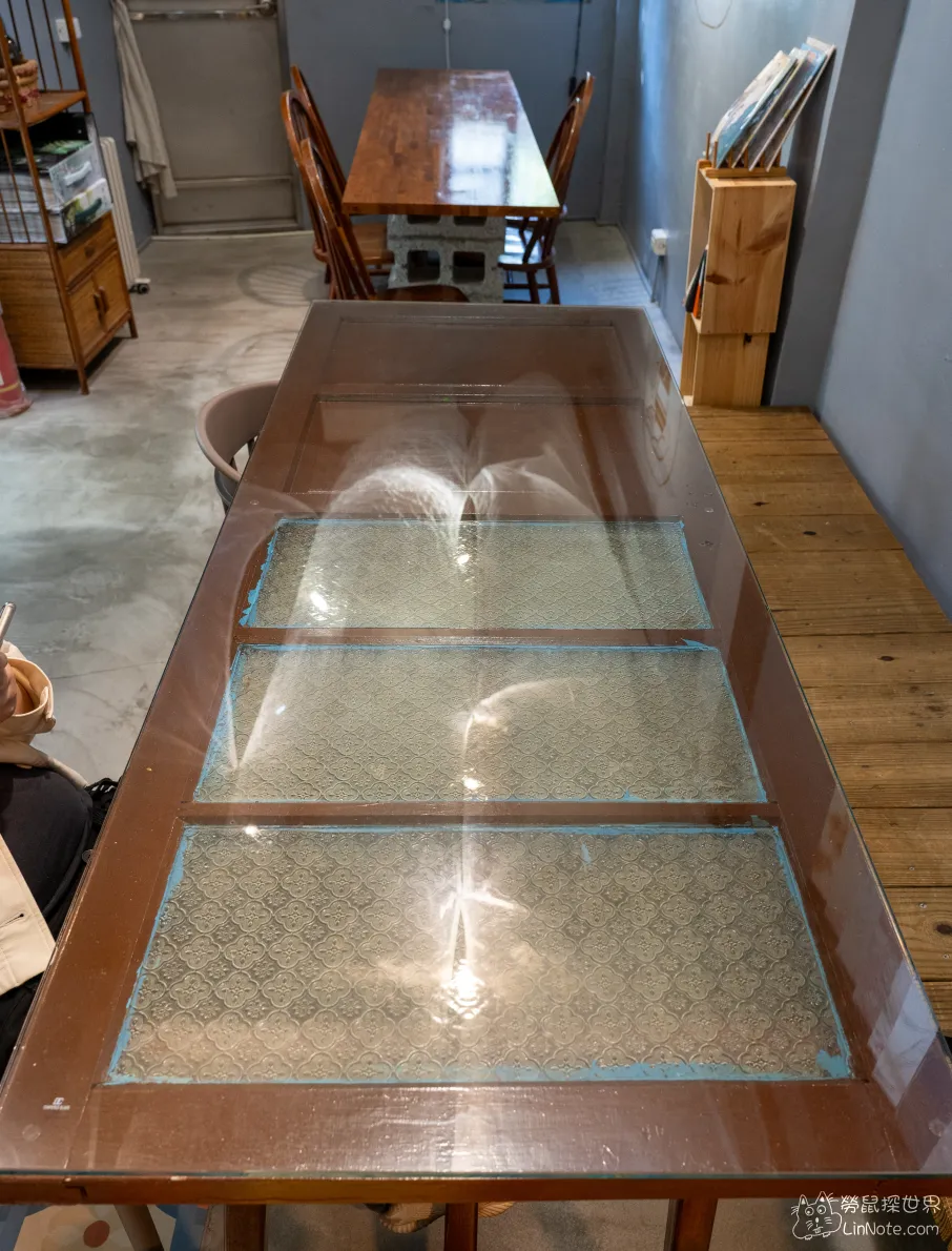我們當天坐的桌子居然是門!意外發現的,也太酷的設計吧,不過這裡的桌子設計得比較高一點,當天用餐都要坐得比較挺直一點,好處是背挺起來了,但這樣就不放鬆啦!