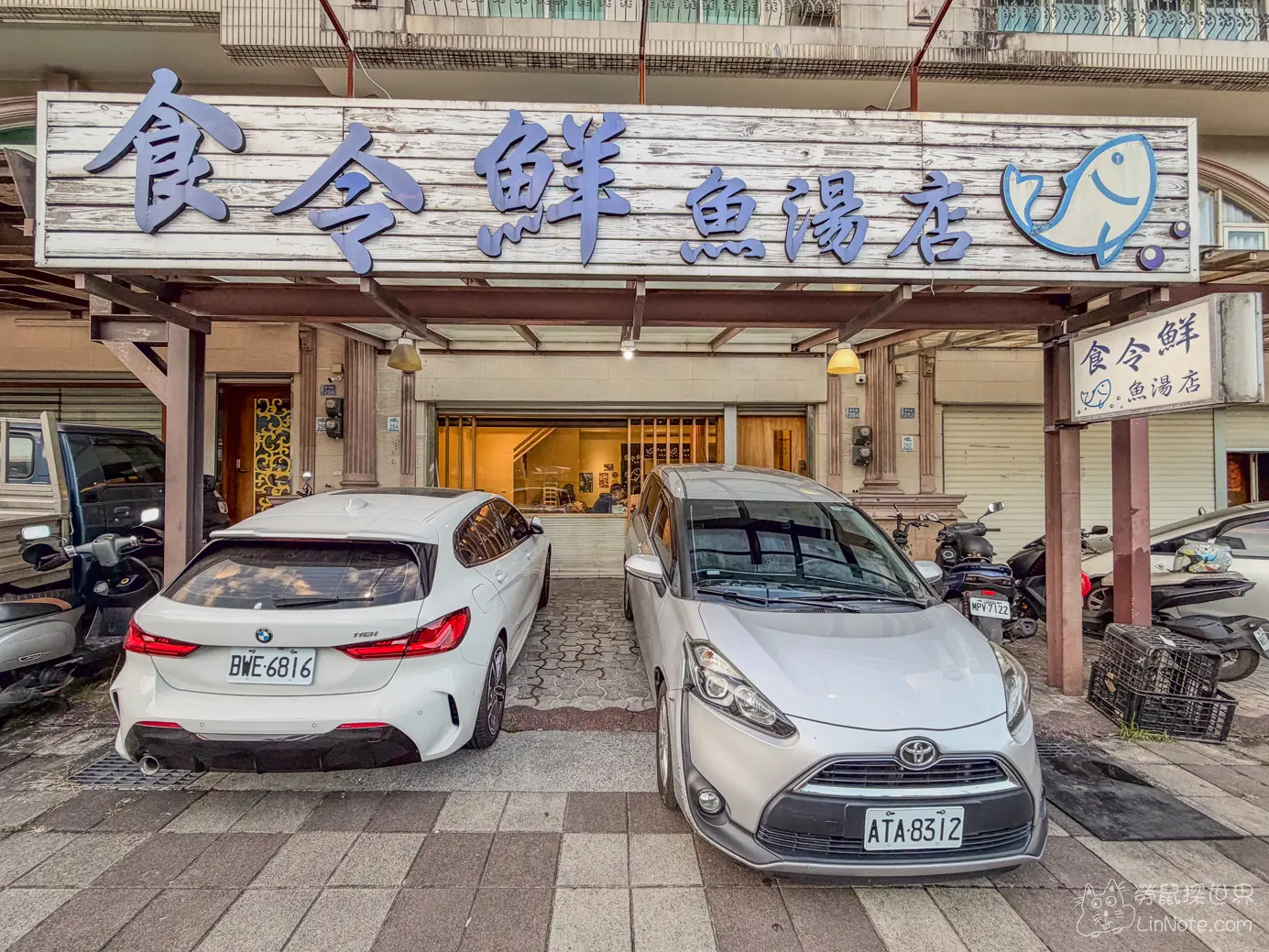 店門口可以停兩輛汽車,因為這裡的客人很多,前面這兩個位置很容易客滿,店家建議可以停到斜對面的喜互惠超商的停車場,停車場雖不收費,但建議還是可以買個東西支持一下店家。