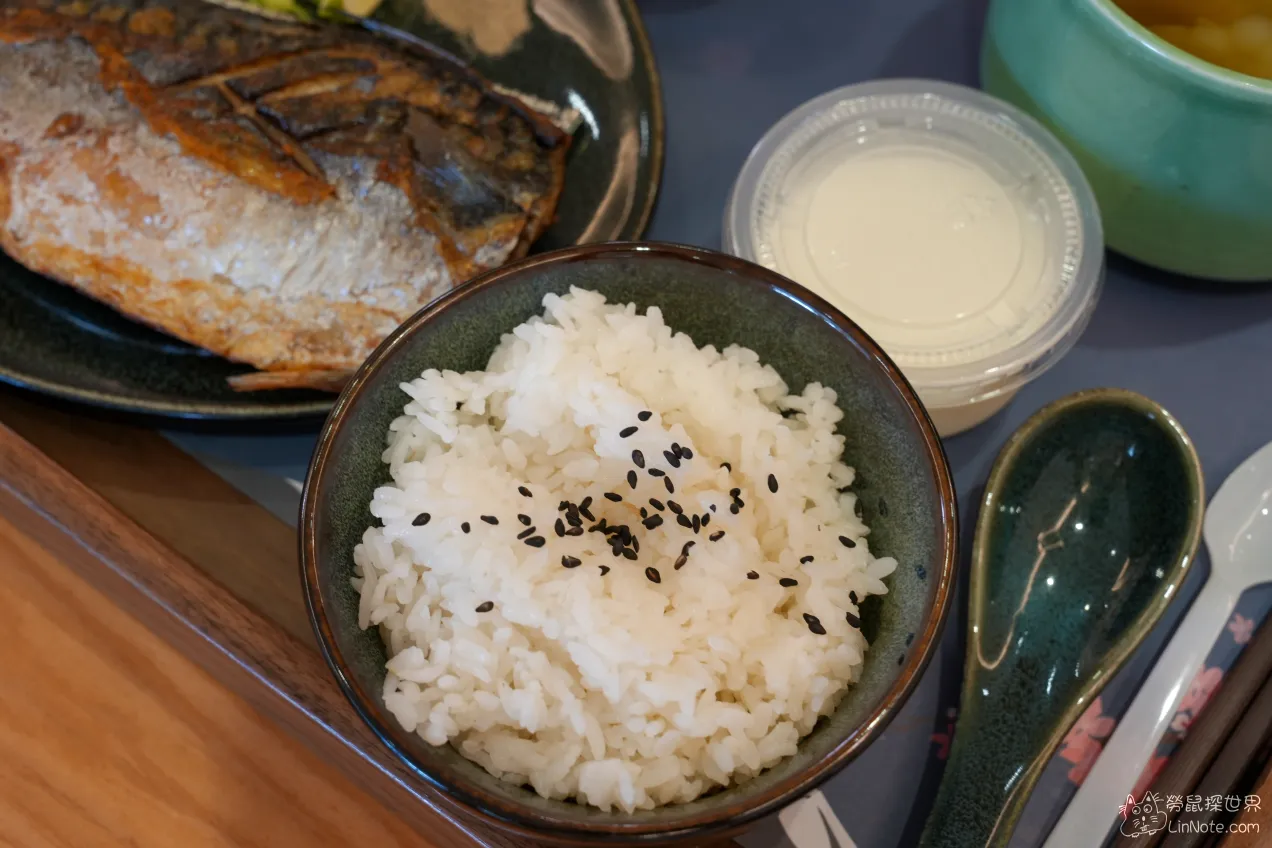 香煎挪威薄鹽鯖魚的鯖魚真的非常大一片,而且厚度也很夠,看得出老闆有特別選擇比較大塊的魚肉,魚肉也非常新鮮,咬下去都是滿滿的油脂香,鯖魚肉的香甜盡在其中。