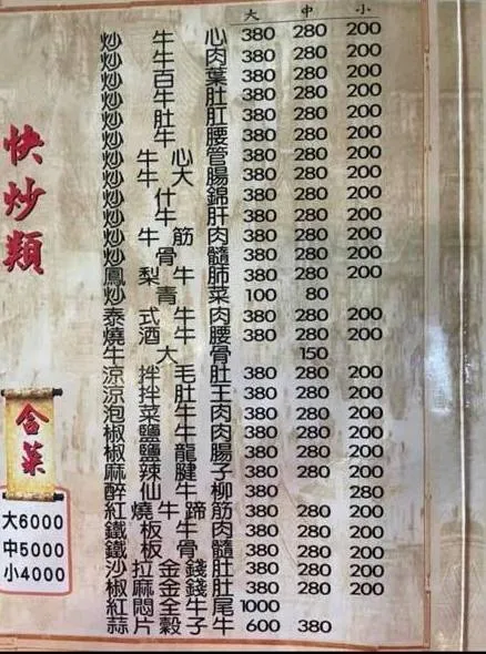炒什錦裡面的料非常豐富,基本的牛肚牛筋都有,其他還有牛腰子、牛腸子這些很少見的材料,如果喜歡吃內臟的話,很推薦點這一盤。