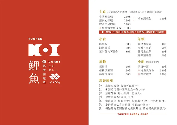 鯉魚熟成咖裡菜單