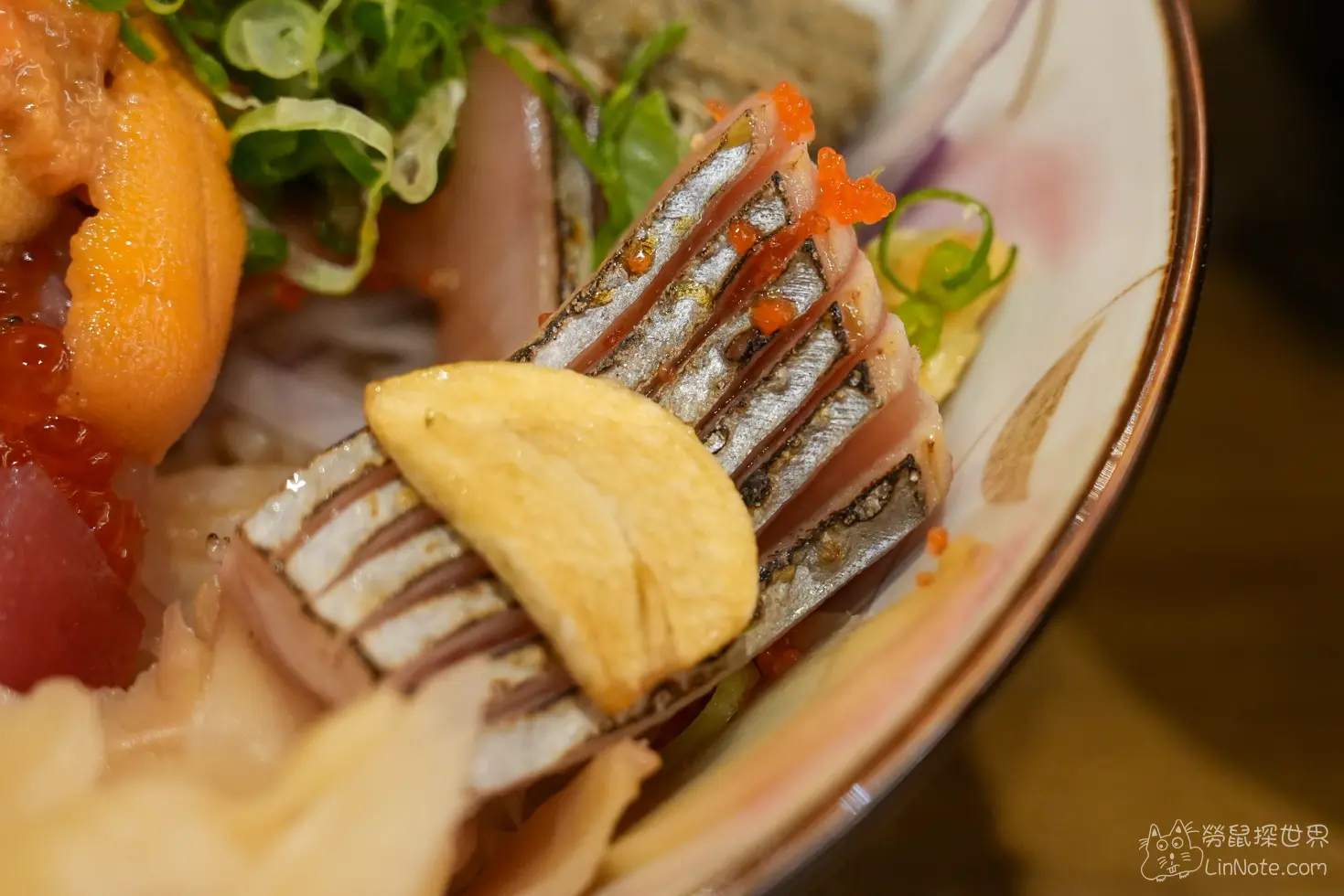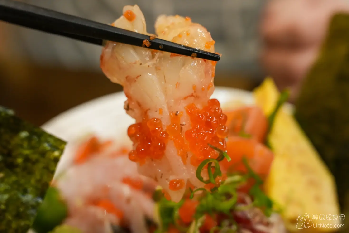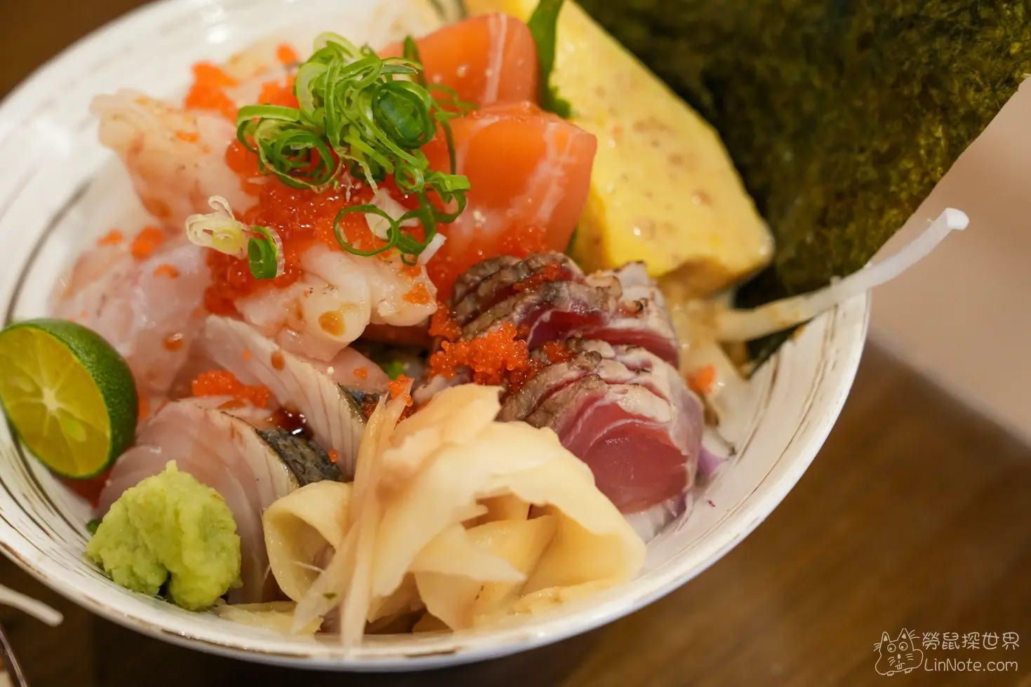 店家的招牌的海鮮丼也是誠意十足。裡面的鮭魚、鮪魚、天使紅蝦和透抽都非常鮮甜,適合想簡單品嚐職人手藝的朋友。