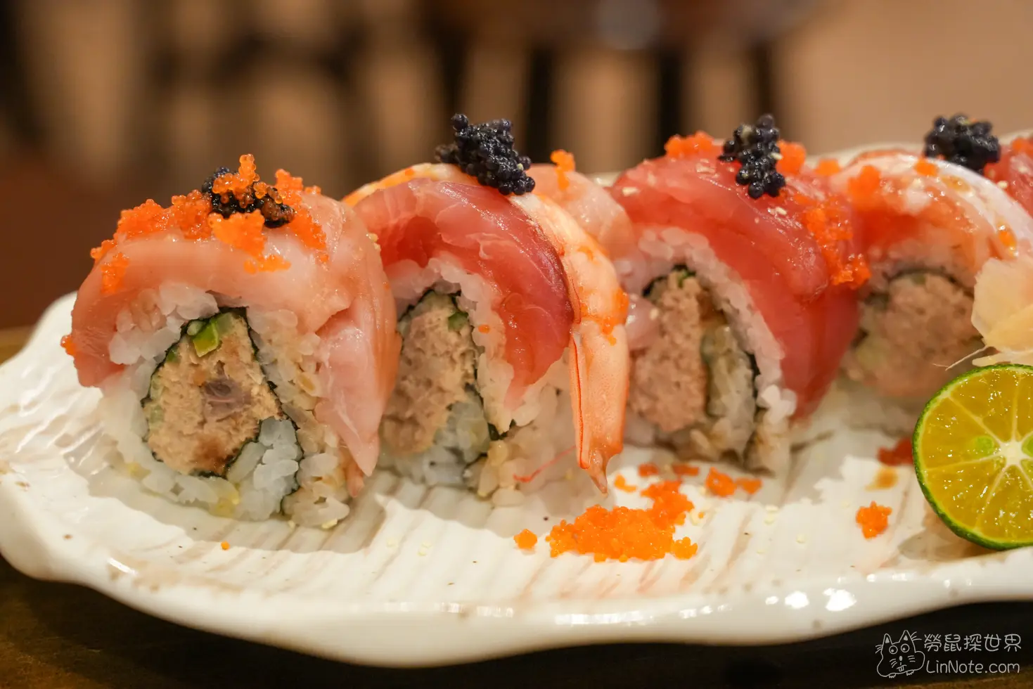 厲害的是小黃瓜完全沒有草腥味,反而保留了極佳的脆口度,搭配香氣濃郁的鮪魚,最後再疊上層層鮮魚,口感非常有亮點,我個人非常推薦。