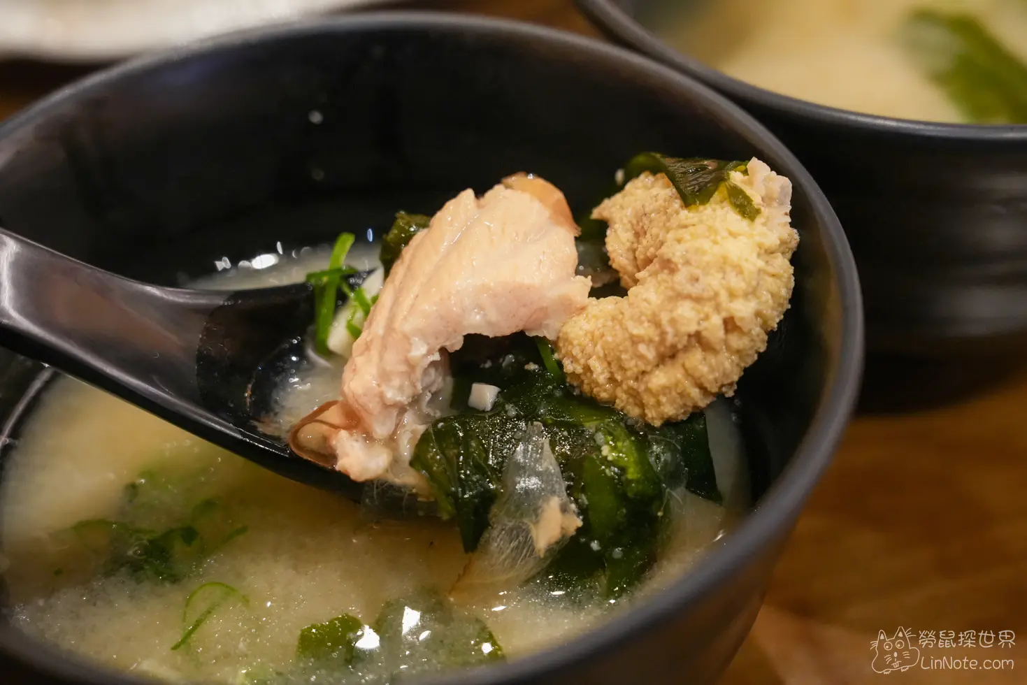 味噌湯湯頭飽含了鮭魚的香味,裡面還有鮭魚肉以及魚卵!