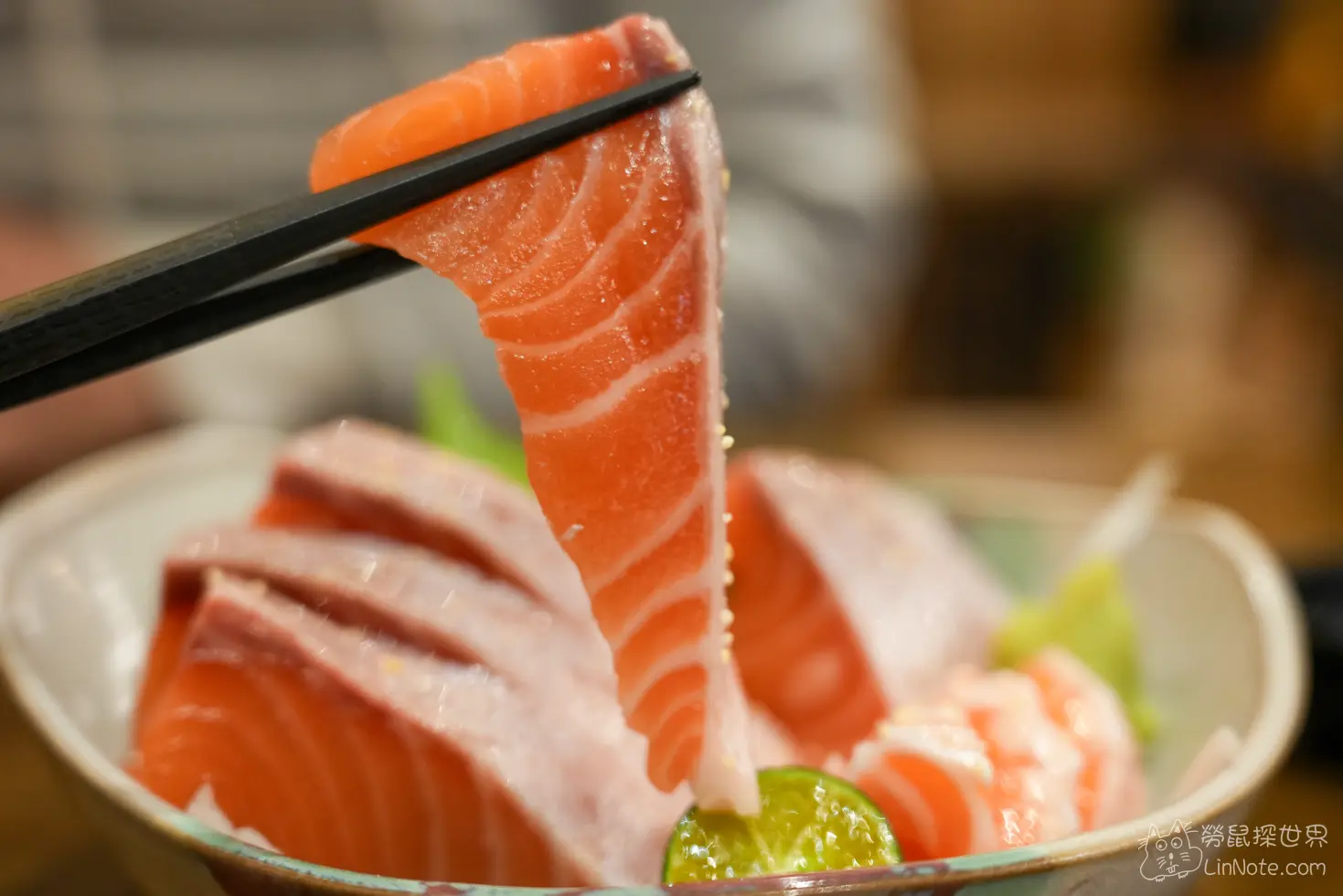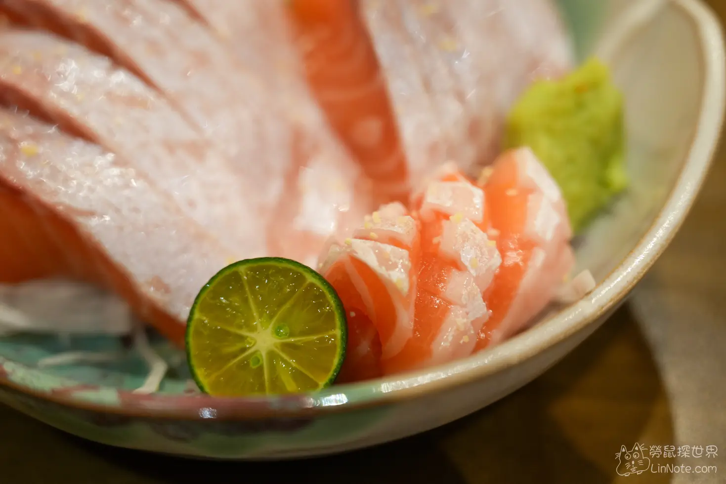 鮭魚的鮮甜味沒話說,最驚艷的是店家預先在上面擠了金桔汁,時不時飄出的金桔清香,讓豐厚的鮭魚油脂吃起來更加清爽不膩。