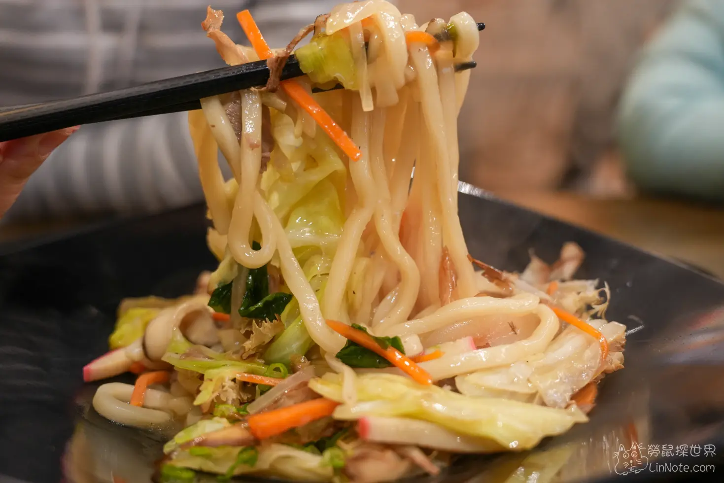 想吃點熱食的朋友,這道炒烏龍麵的醬汁非常濃郁。味道基調有著柴魚湯的鮮甜,還帶點類似章魚小丸子的甜潤感。最吸睛的是上面鋪滿了柴魚片,