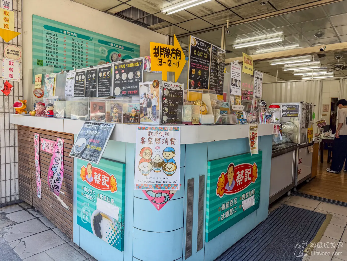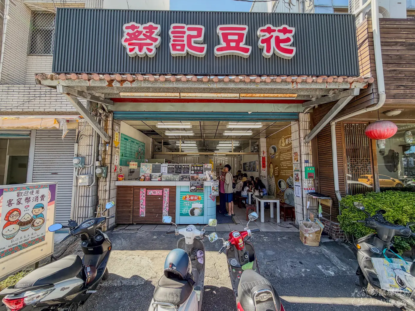 蔡記豆花內的位置不多,而且來客人數很多,所以要先等待內用的座位,有座位後再行點餐,若攜帶嬰兒推車前往,店內座位較狹窄,建議等候靠近門口的位置較為方便。