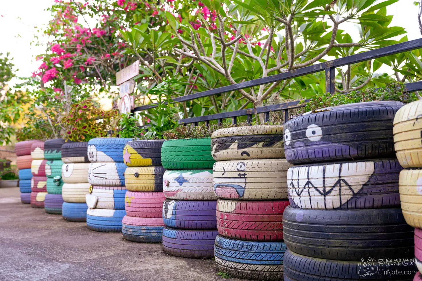 門口擺放了充滿童趣的彩繪輪胎,每一個都別具特色,是網美與親子拍照的熱門打卡點。
