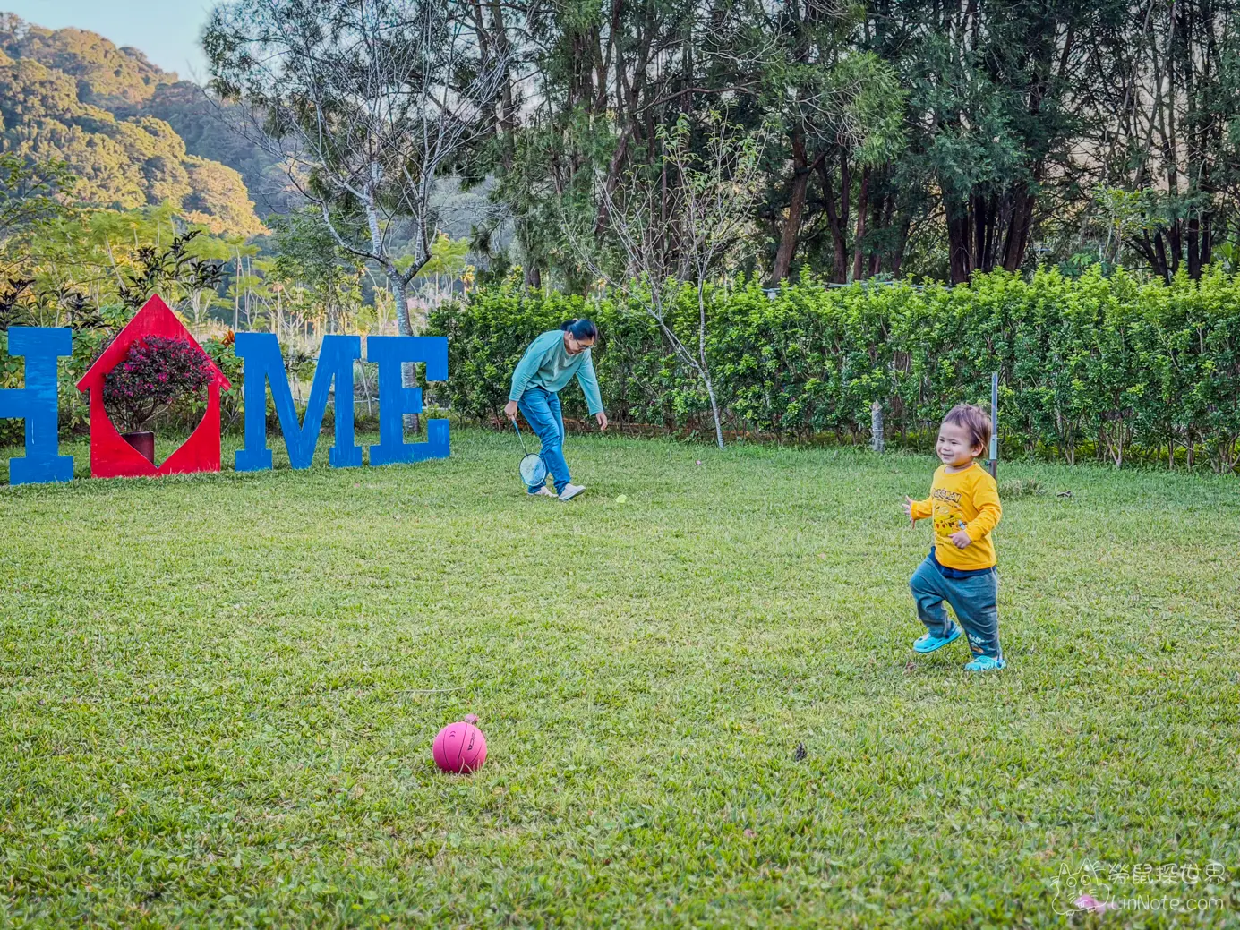 草坪非常大,很適合在這裡踢球,也有遇到客人帶著羽毛球前來。
