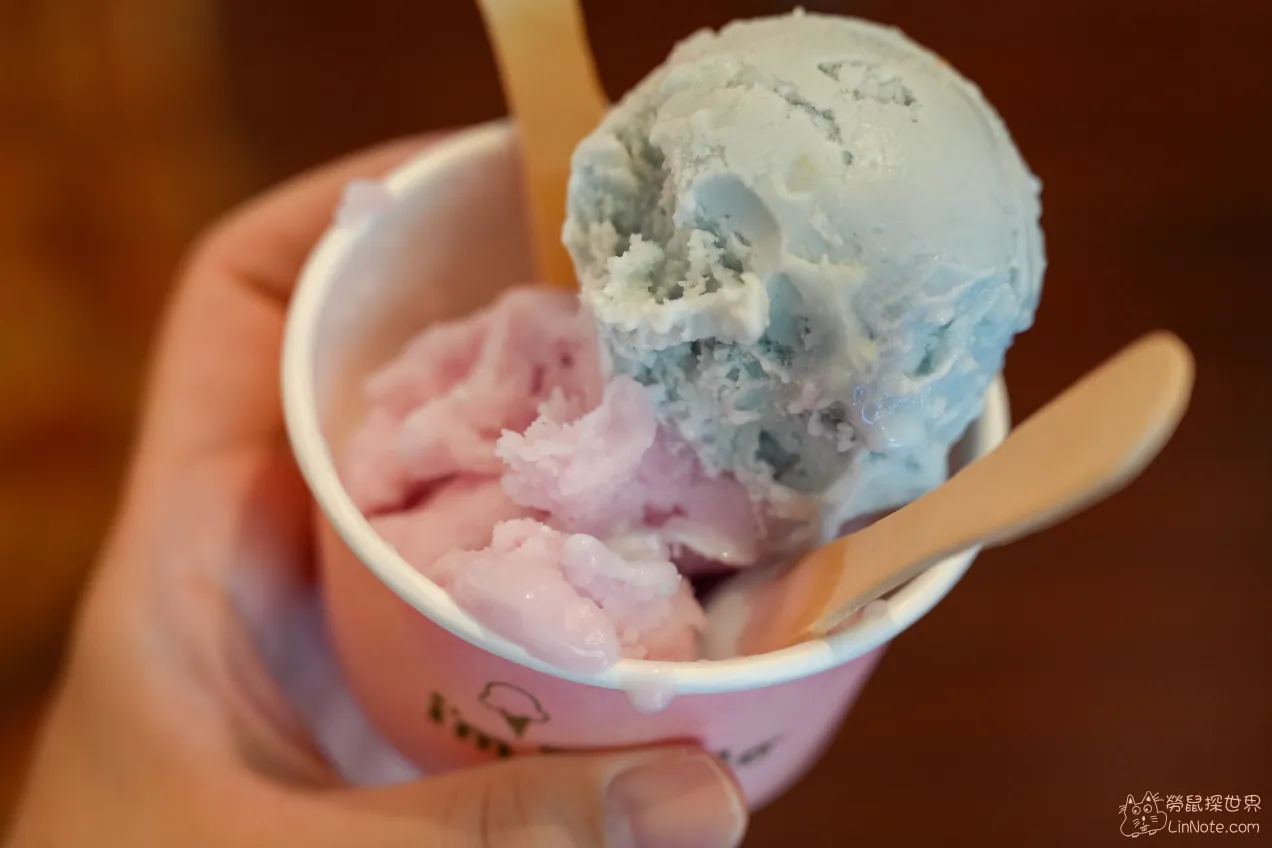 西濱之淚其實是海鹽口味,吃起來鹹甜鹹甜的,蝶豆花檸檬則是檸檬風味,兩著都屬於比較清爽型,沒有什麼奶味。